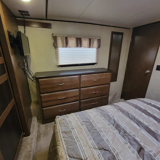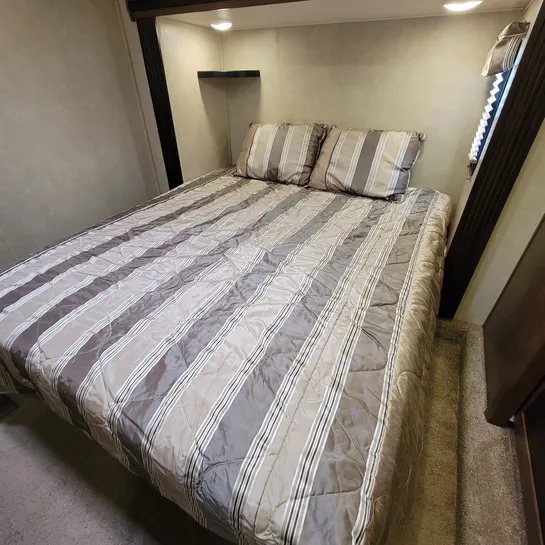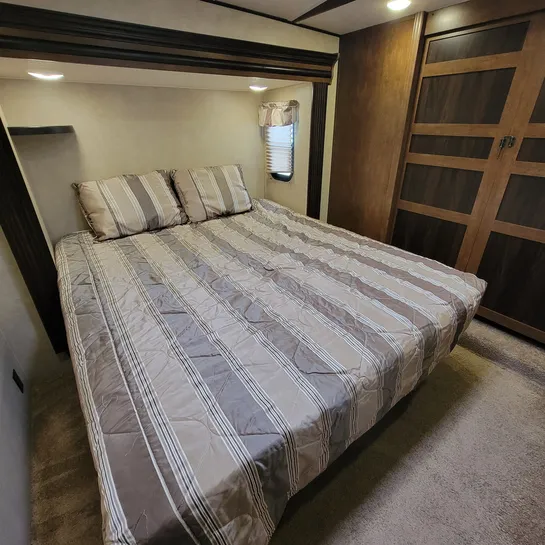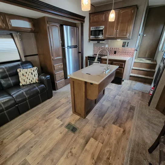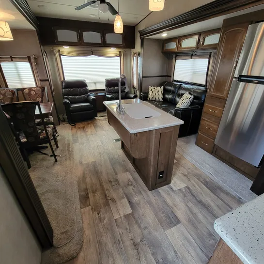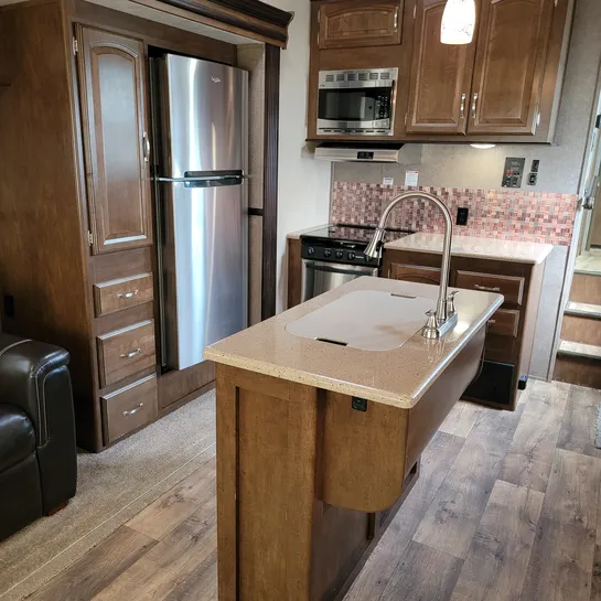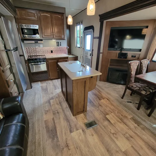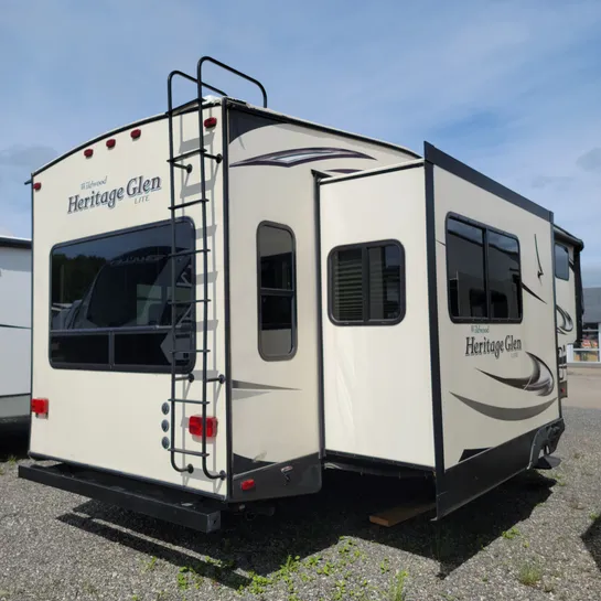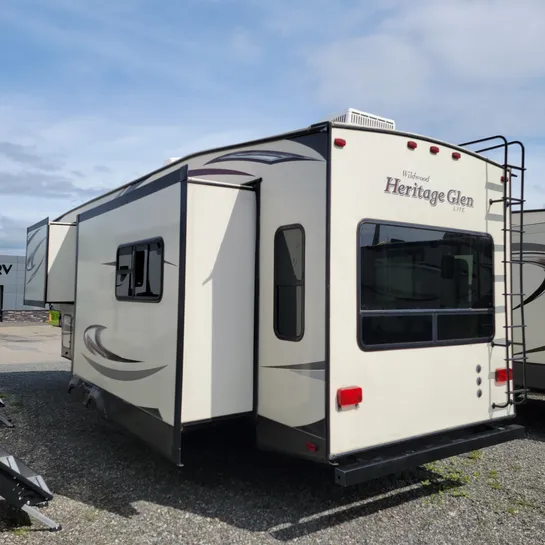 The 2016 Forest River Wildwood Heritage Glen 286RL is a fifth-wheel RV with a rear living area and three slide-outs. Key features include a king-size bed, a residential tub/shower, and a kitchen island. The RV is designed with quality construction and attention to detail, offering a comfortable and convenient experience for travelers.