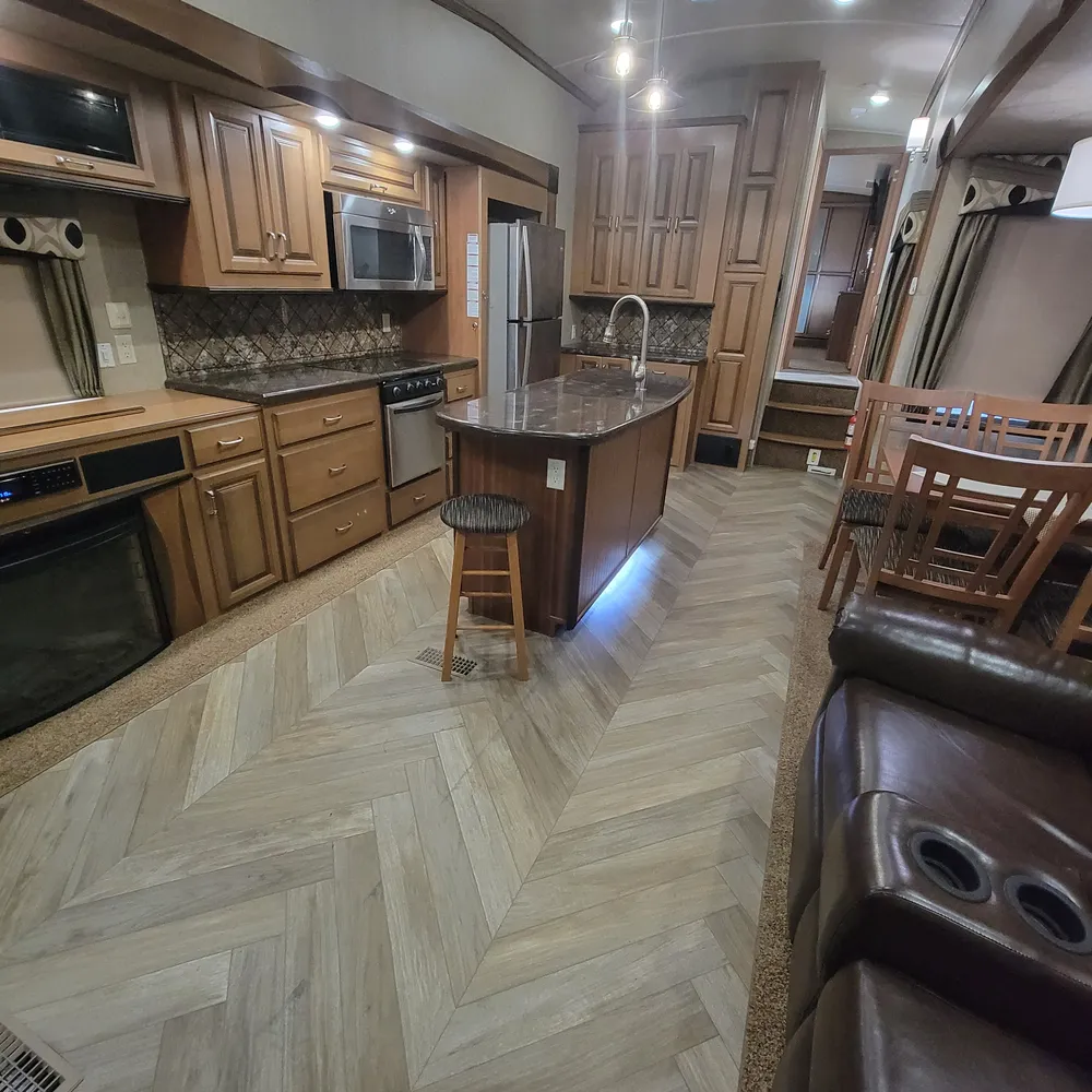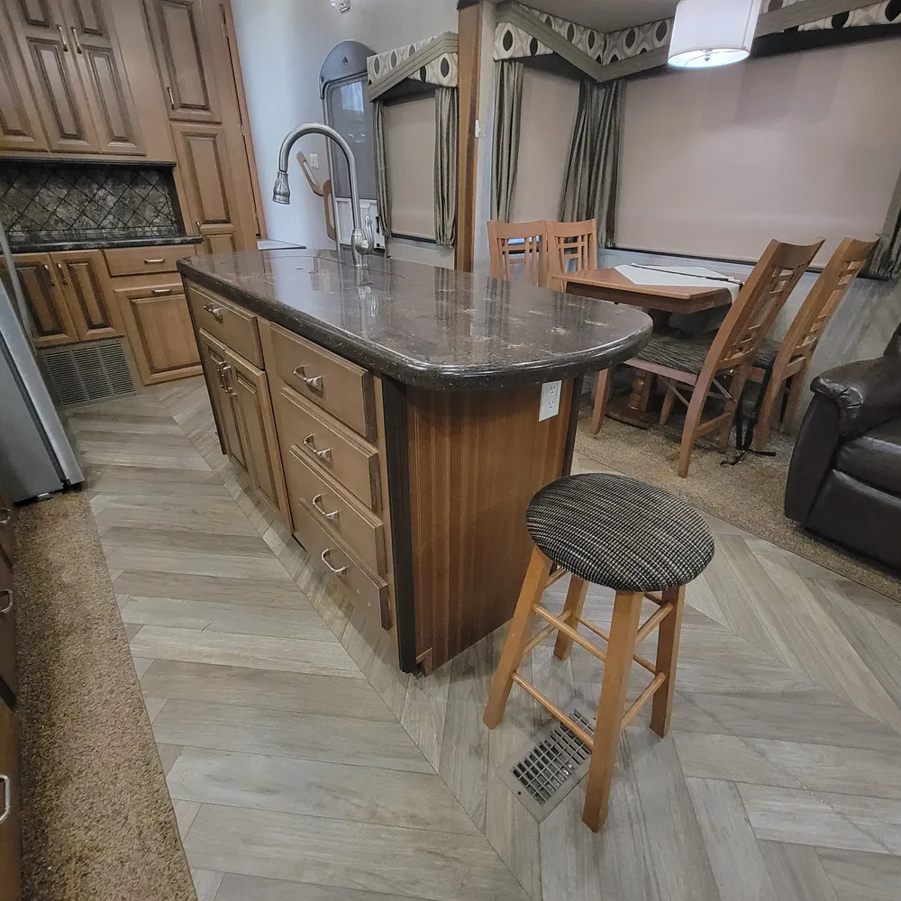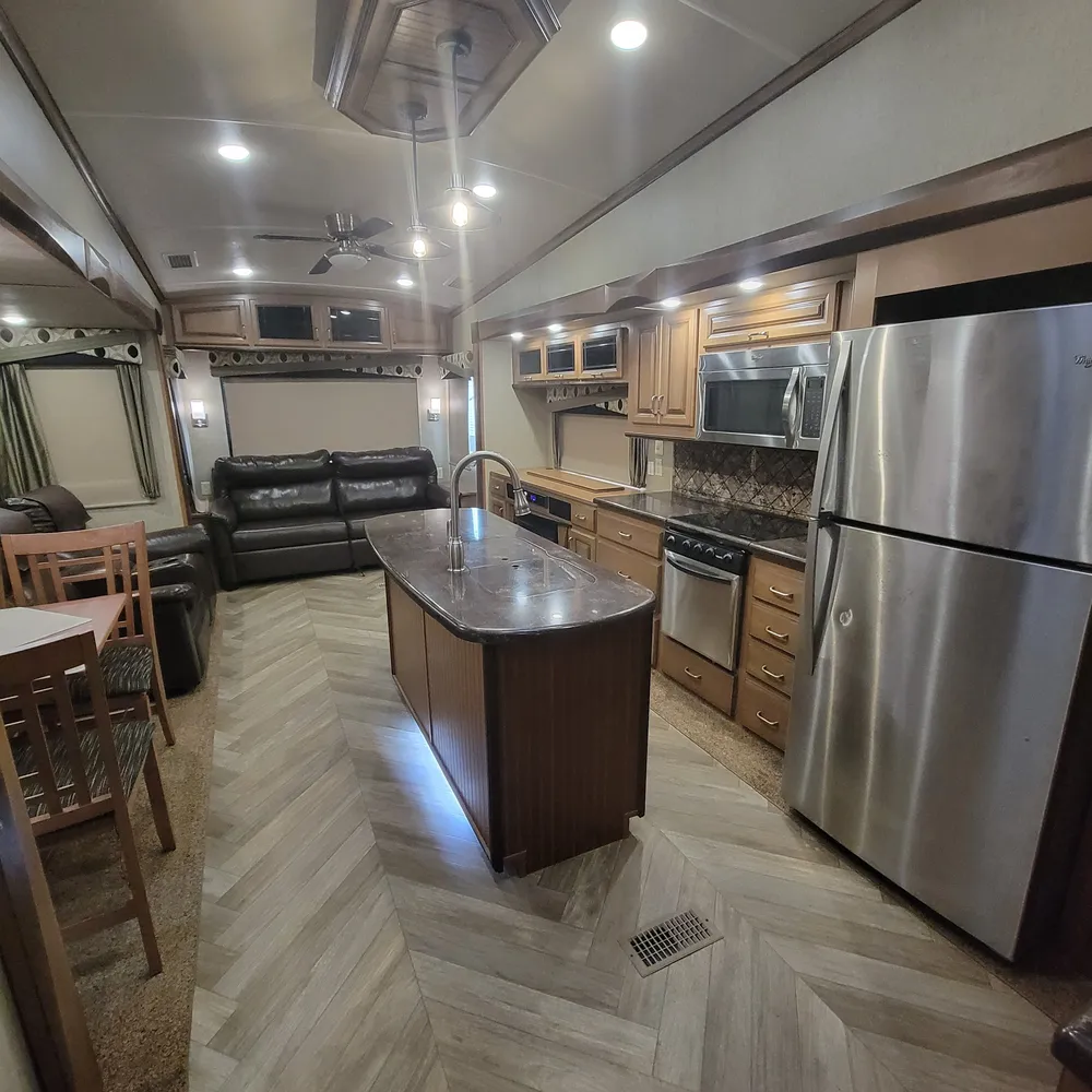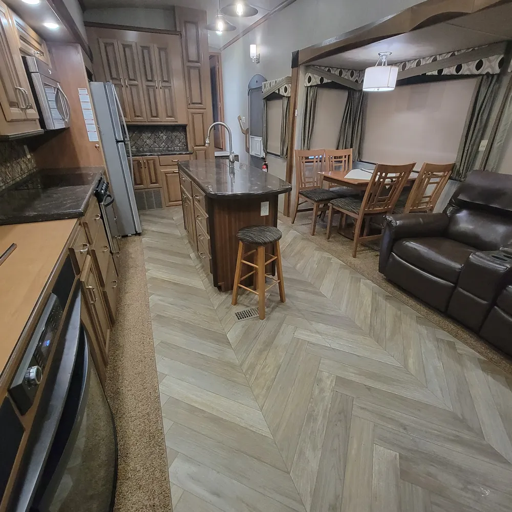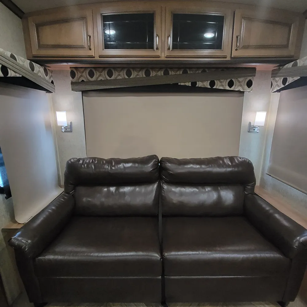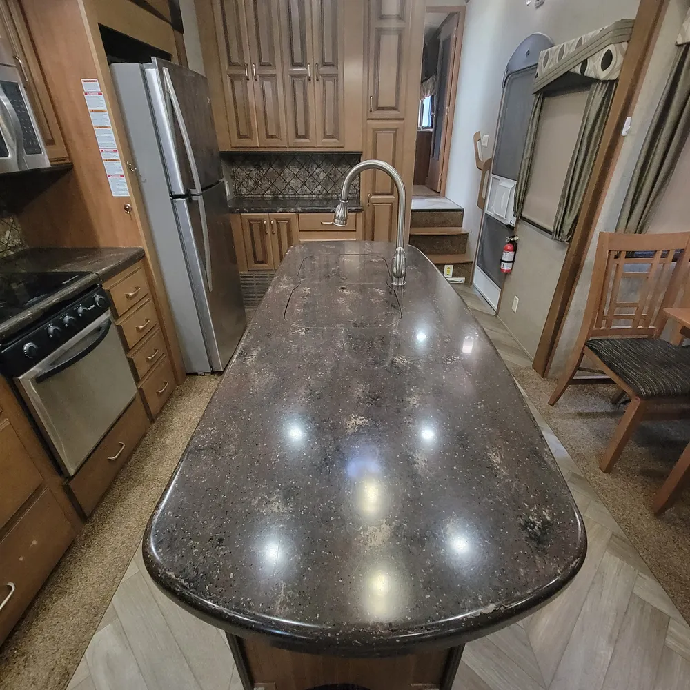 In stock at Stone’s RV, the 2017 Forest River Cedar Creek Hathaway Edition 36CKTS is a distinctive luxury fifth wheel that delivers residential comfort in a rear living layout. At 40 feet long, this unit sleeps 4 people, weighs 12,670 lbs dry with a GVWR of 16,407 lbs and a pin weight of 2,500 lbs, making it ideal for couples seeking extended-stay comfort at Maritime campgrounds.