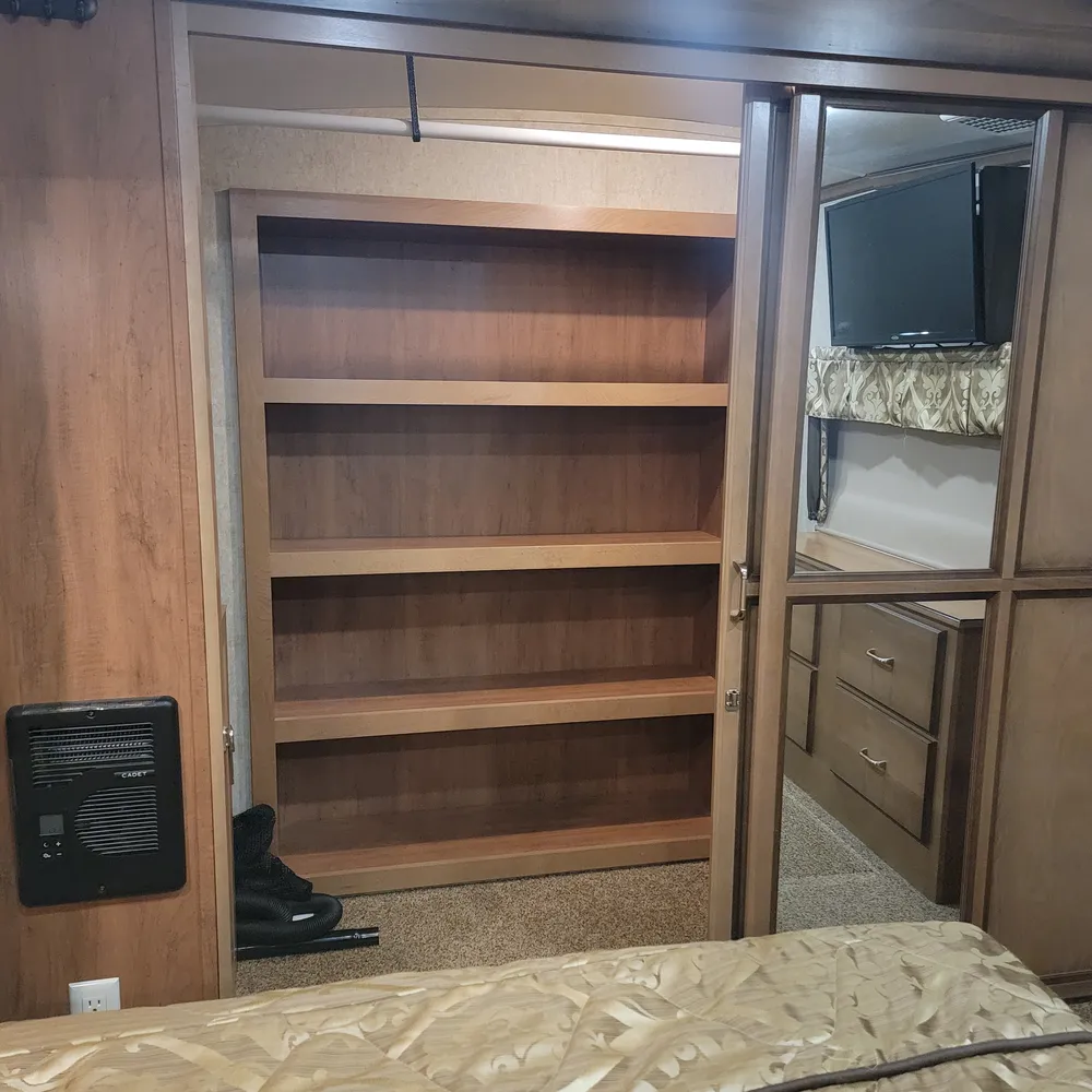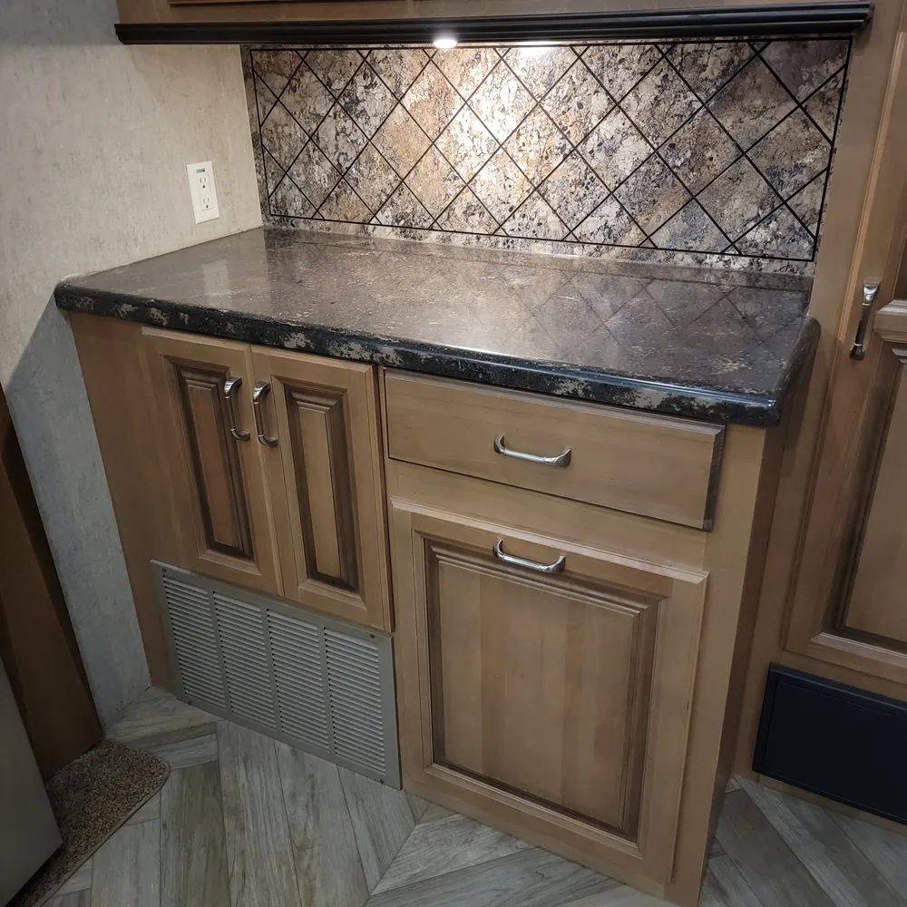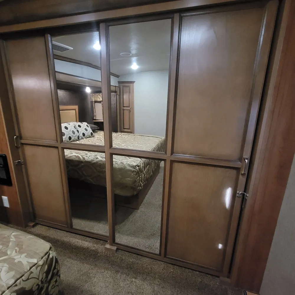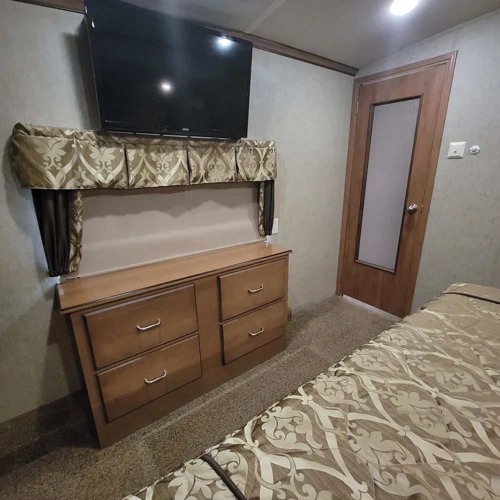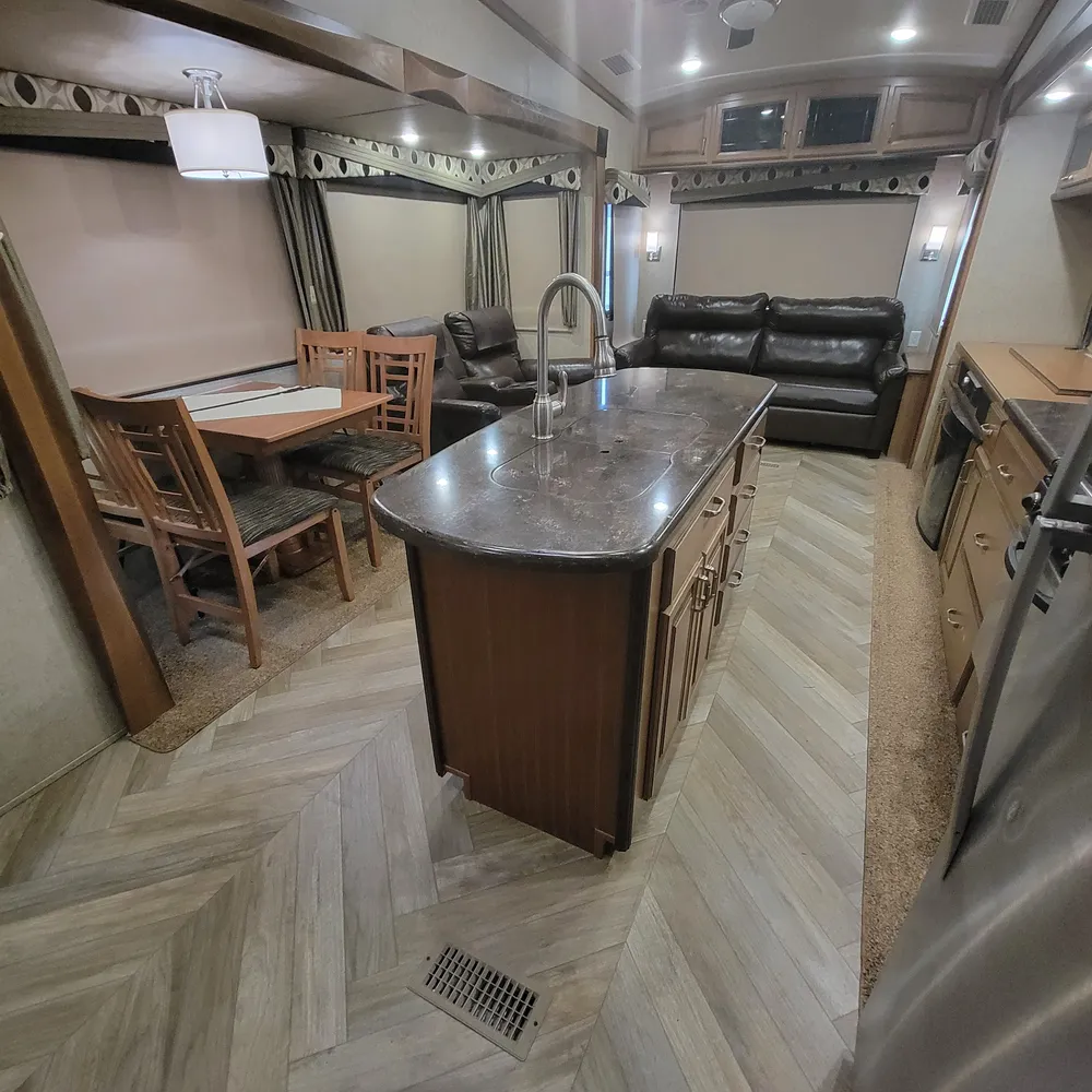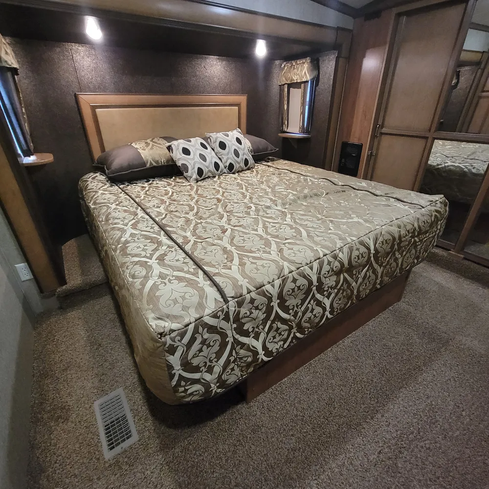 In stock at Stone’s RV, the 2017 Forest River Cedar Creek Hathaway Edition 36CKTS is a distinctive luxury fifth wheel that delivers residential comfort in a rear living layout. At 40 feet long, this unit sleeps 4 people, weighs 12,670 lbs dry with a GVWR of 16,407 lbs and a pin weight of 2,500 lbs, making it ideal for couples seeking extended-stay comfort at Maritime campgrounds.