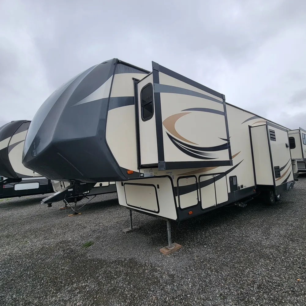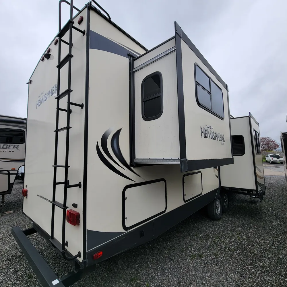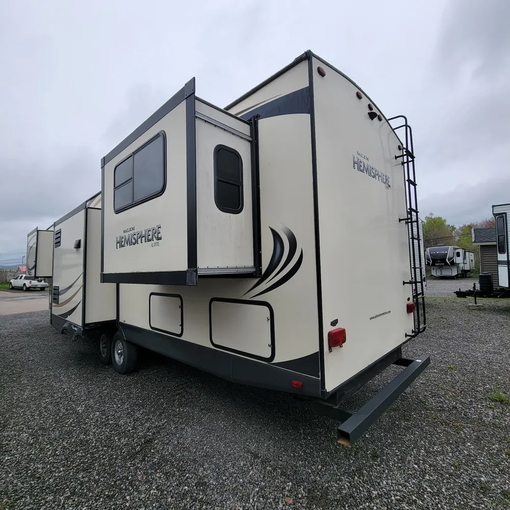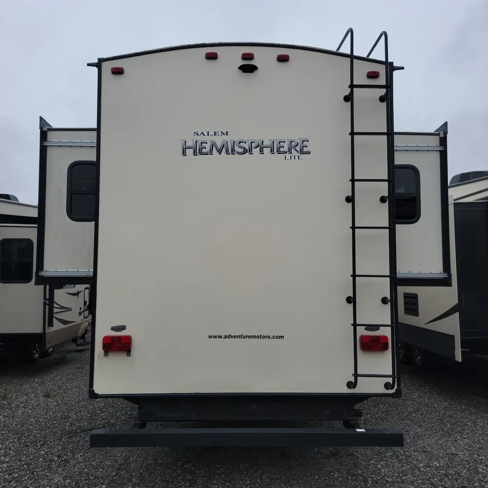 The 2017 Forest River Salem Hemisphere Lite 372RD is a spacious 43-foot fifth wheel with five slideouts and sleeping capacity for 6. This rear den floorplan fifth wheel provides exceptional living space with its multiple slideout design.
