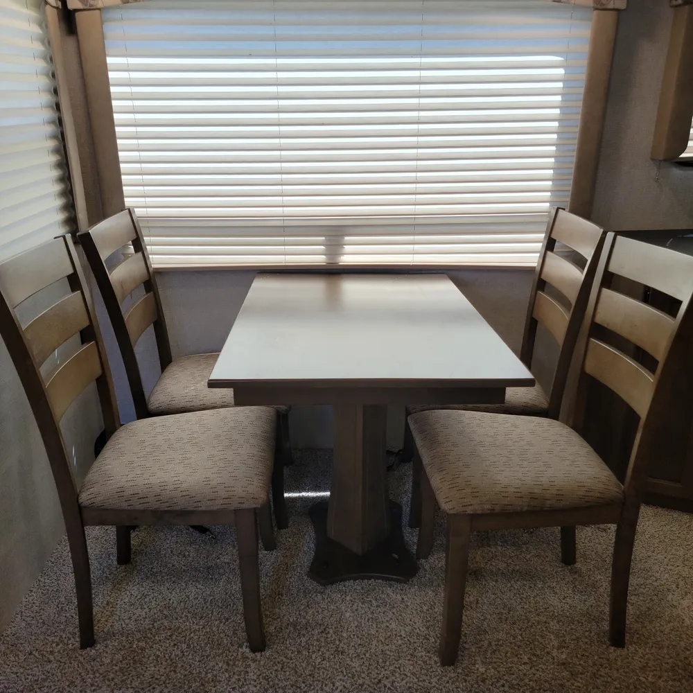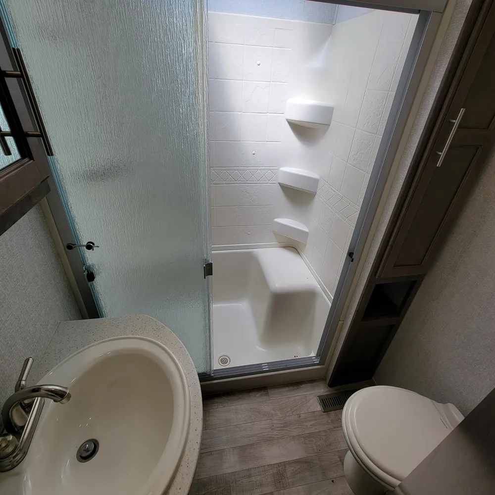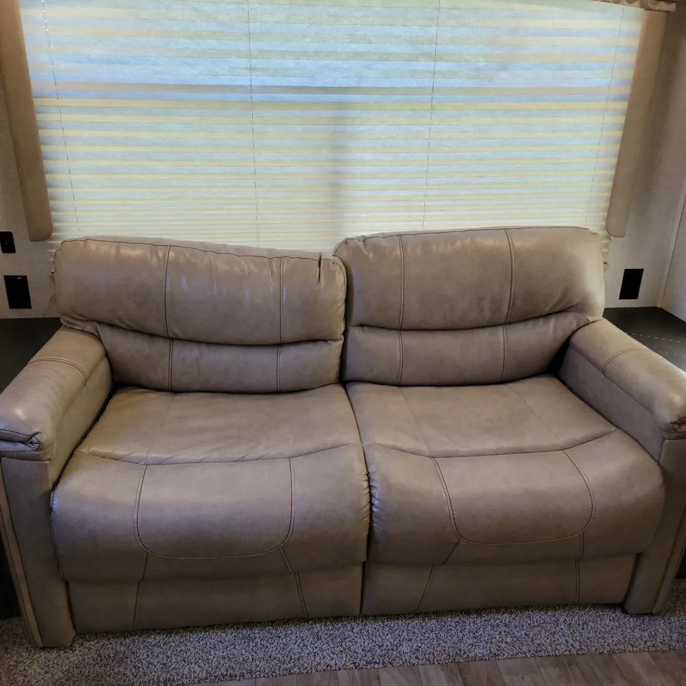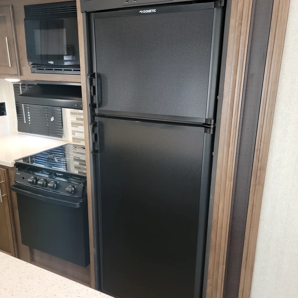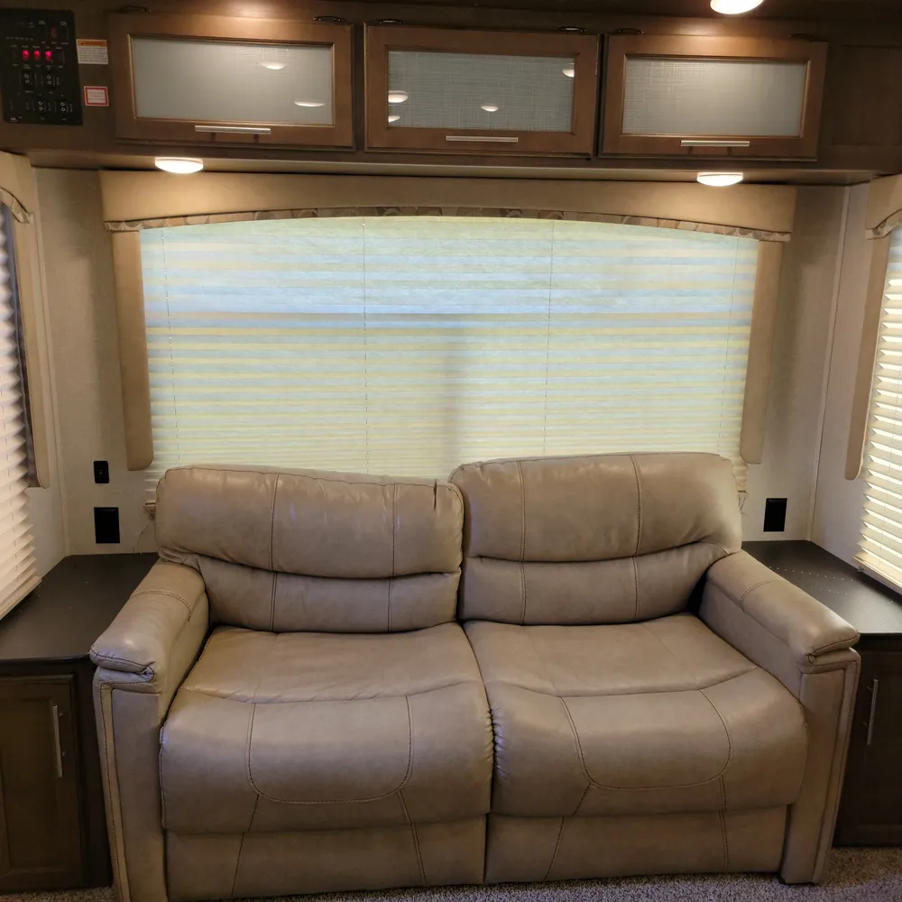 Equipped for the camping season with dual 13,500 BTU ducted air conditioners and a ducted furnace. The 15-foot power awning with LED lighting extends your outdoor living space at Atlantic Canada campgrounds. An electric fireplace, 50-inch TV with entertainment center, and indoor and outdoor speakers make this a comfortable home base for the season.