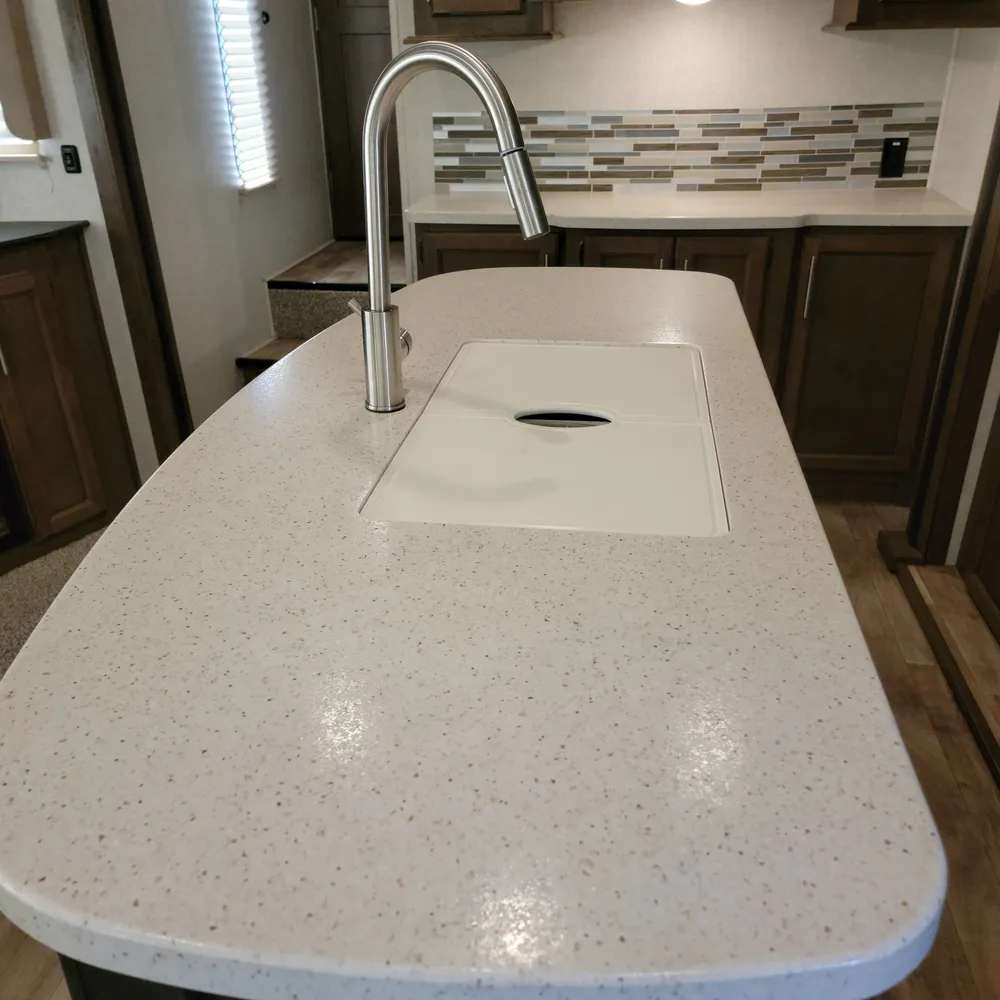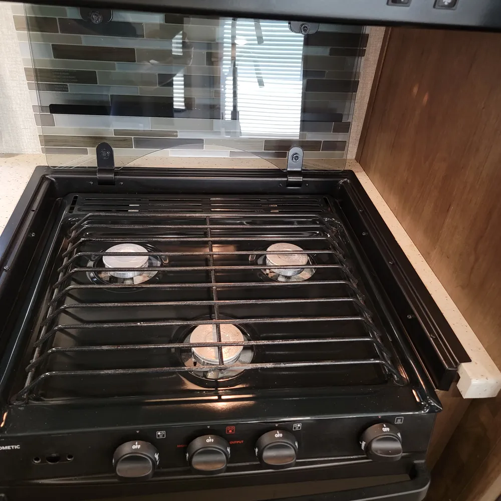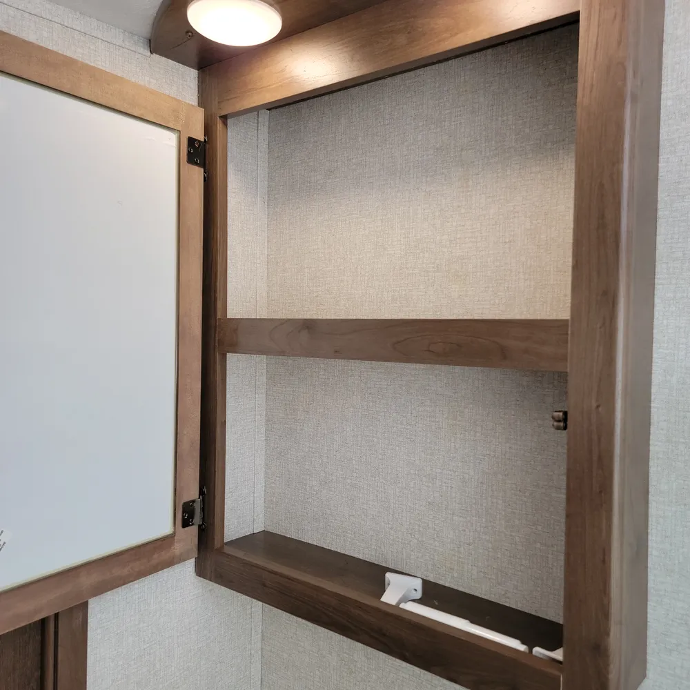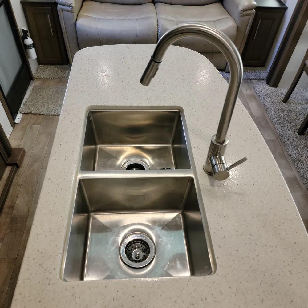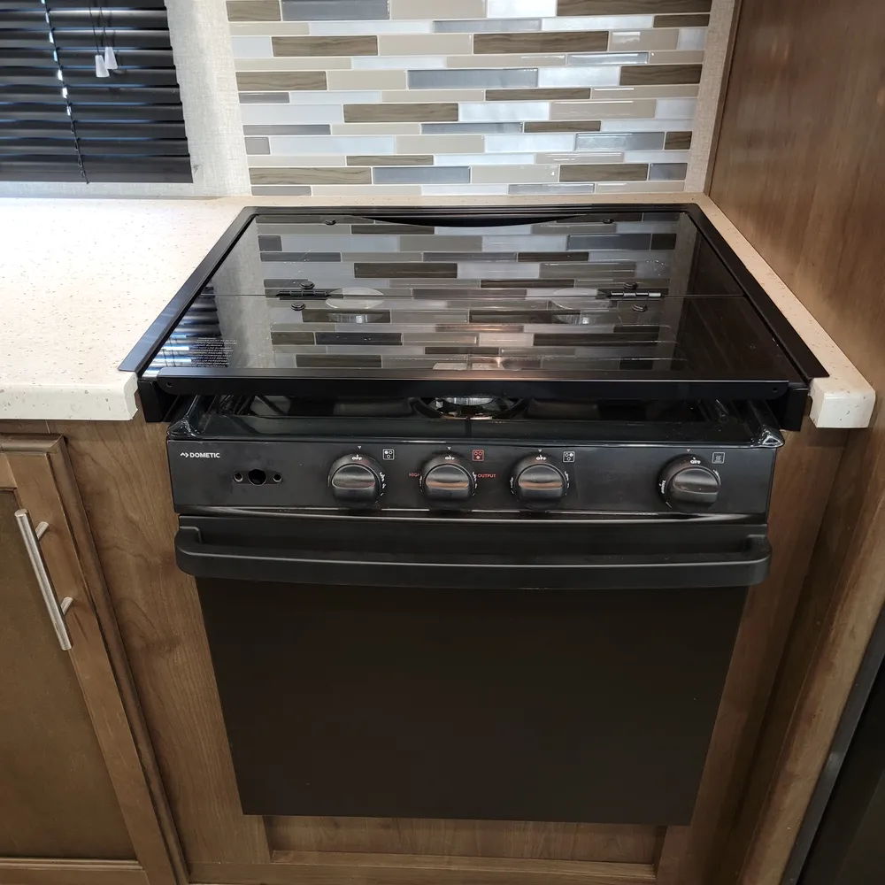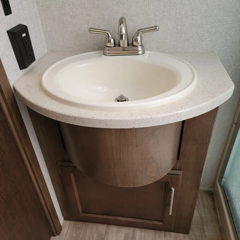 Equipped for the camping season with dual 13,500 BTU ducted air conditioners and a ducted furnace. The 15-foot power awning with LED lighting extends your outdoor living space at Atlantic Canada campgrounds. An electric fireplace, 50-inch TV with entertainment center, and indoor and outdoor speakers make this a comfortable home base for the season.