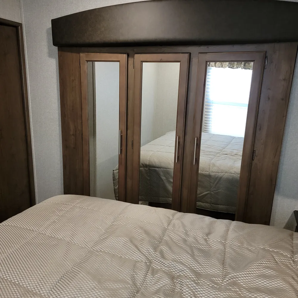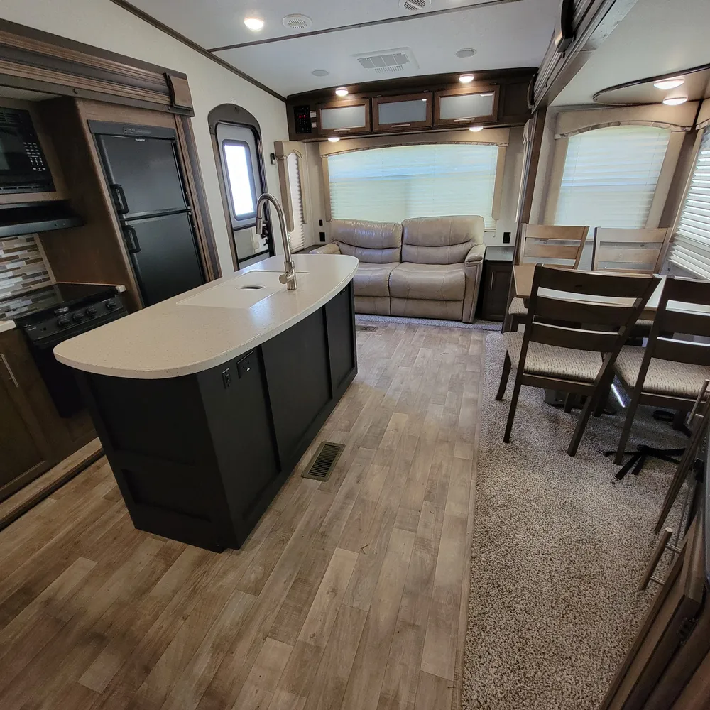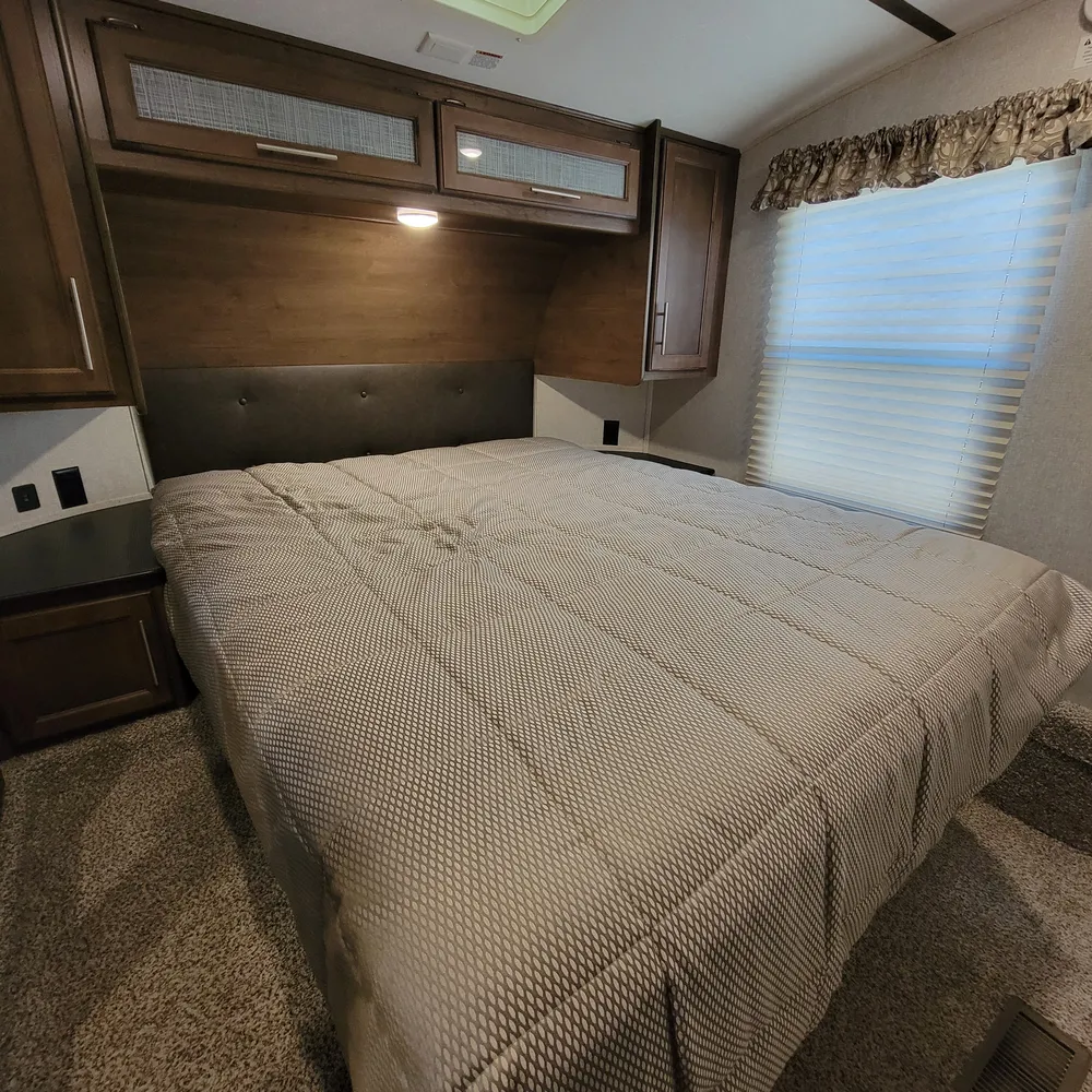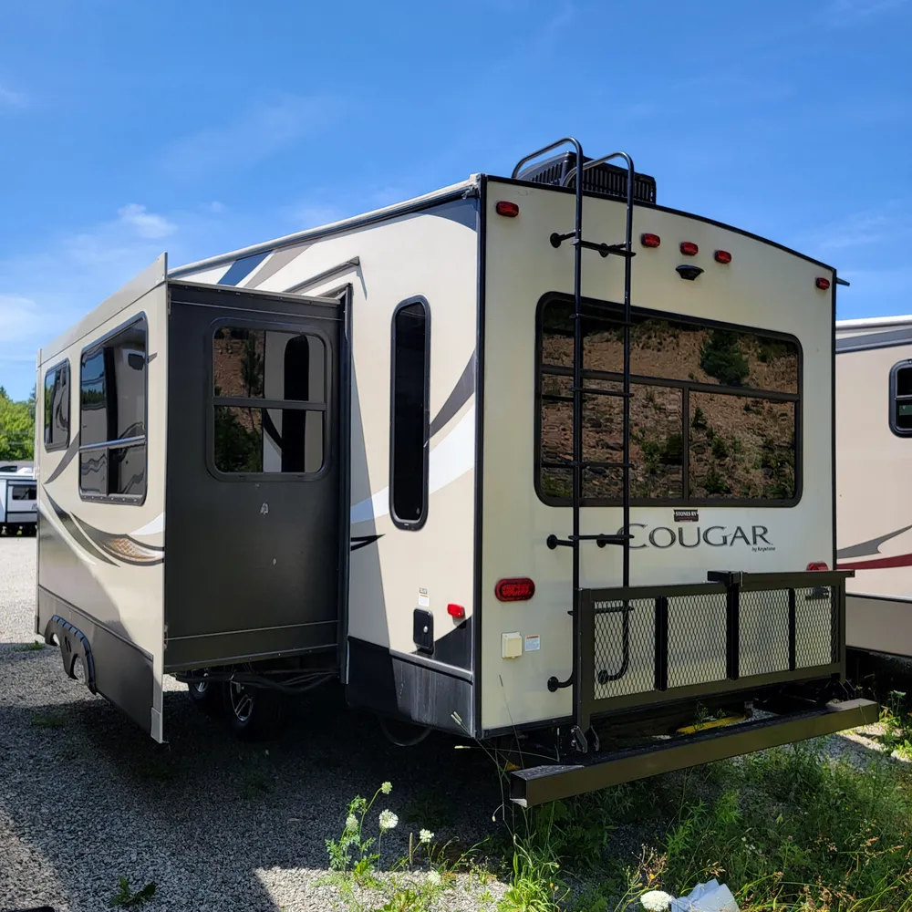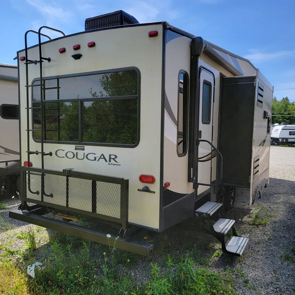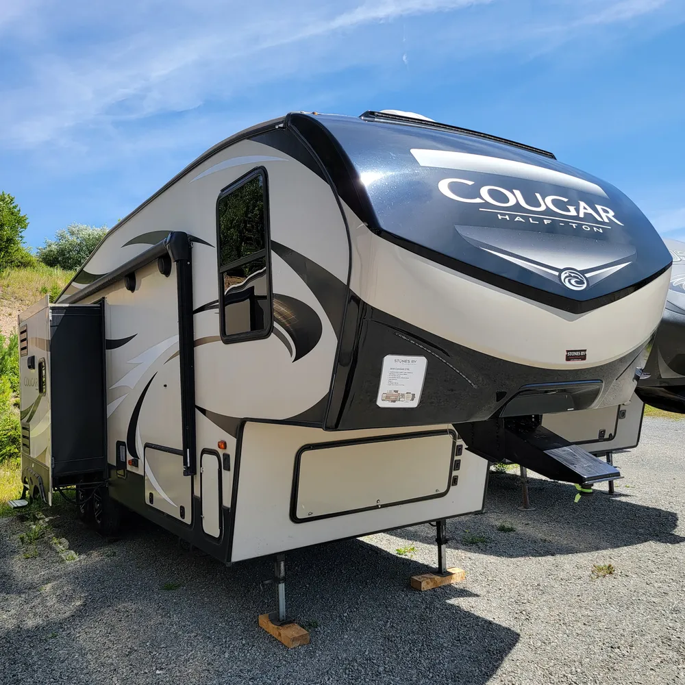 This is a pre-owned 2018 Keystone Cougar Half-Ton 27RLS. It’s a 31-foot rear living fifth wheel that sleeps up to 4 people. With a dry weight of 7,885 lbs and pin weight of 1,655 lbs, the Cougar Half-Ton 27RLS is built to tow behind a half-ton truck while delivering the space and features of a full-size fifth wheel.