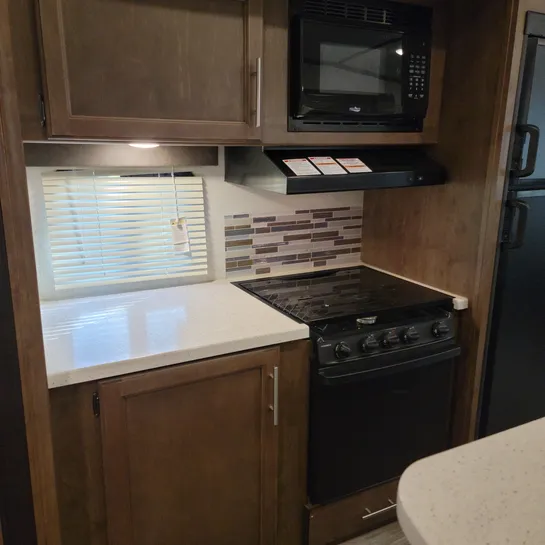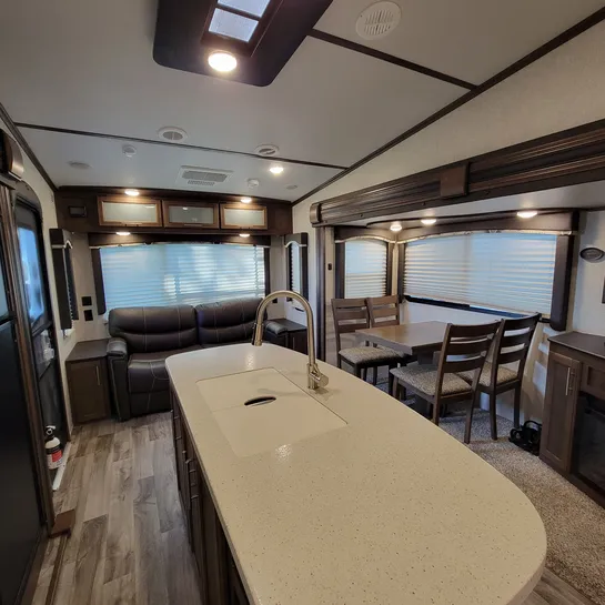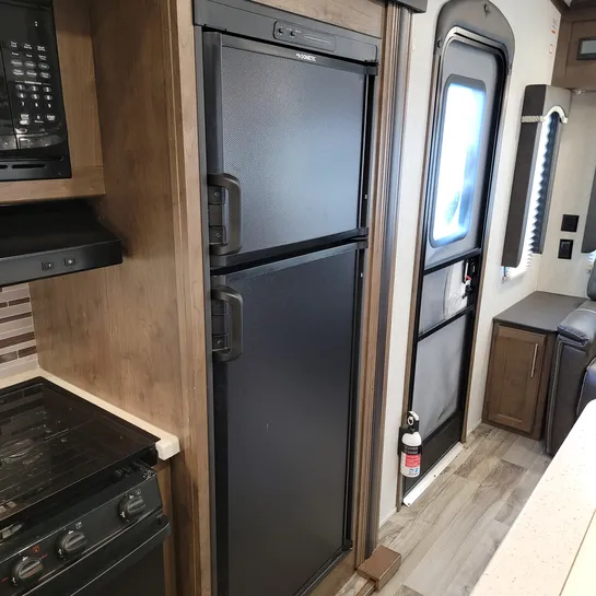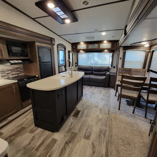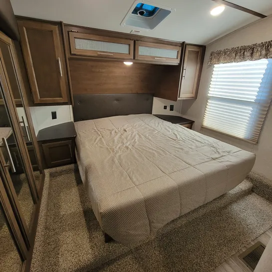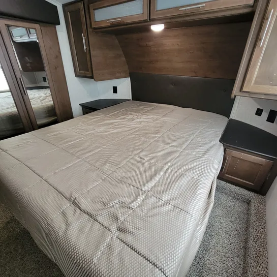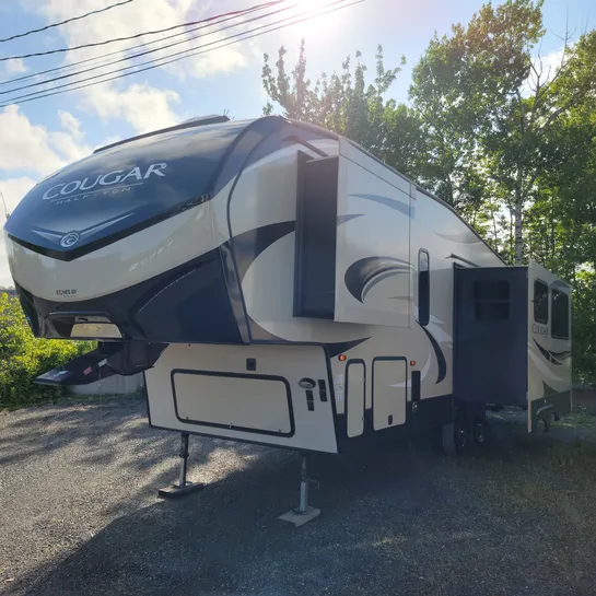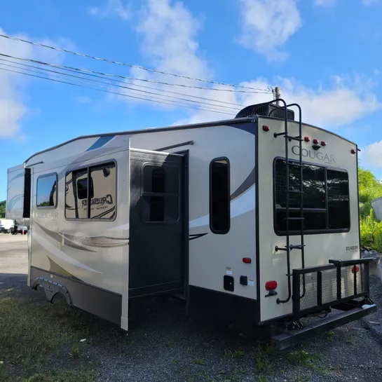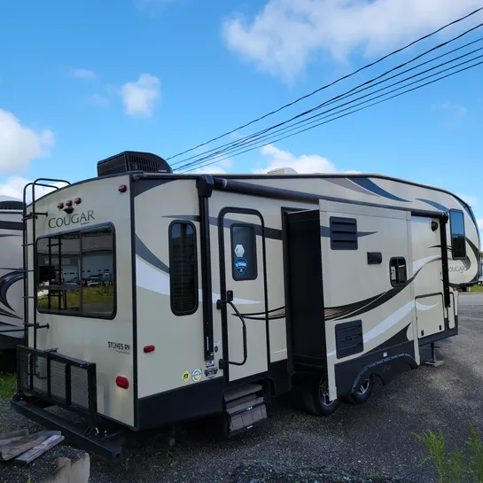 The 2019 Keystone Cougar Half-Ton 27RLS is designed for comfortable and convenient travel. It features a rear living layout with three slide-outs, providing ample living space, and is equipped with modern amenities and features for enjoyable camping experiences.