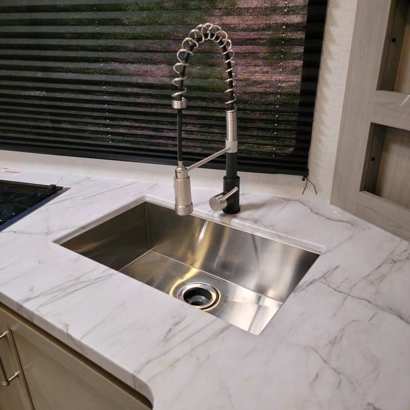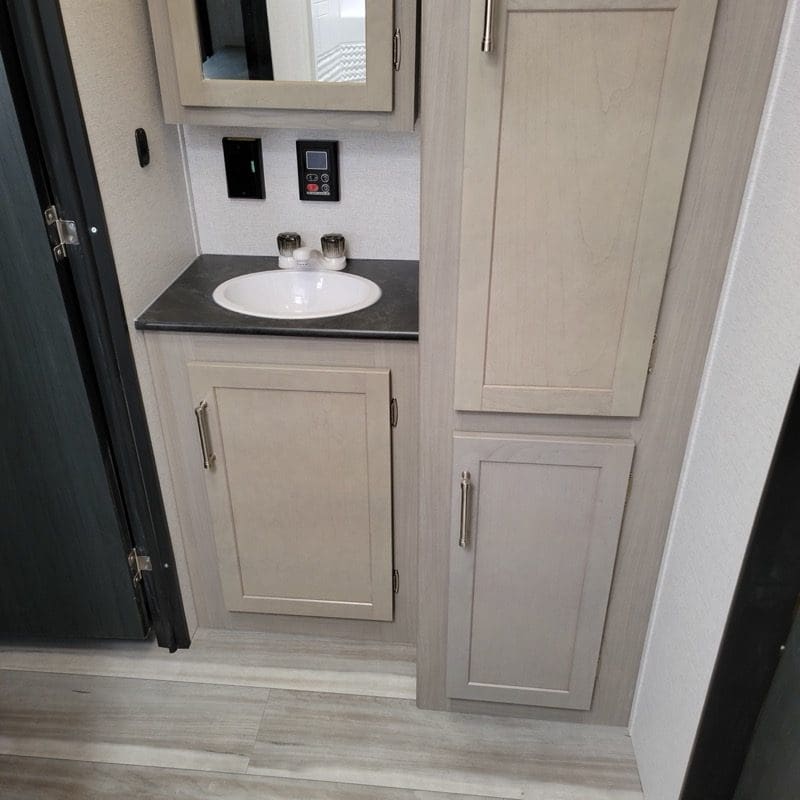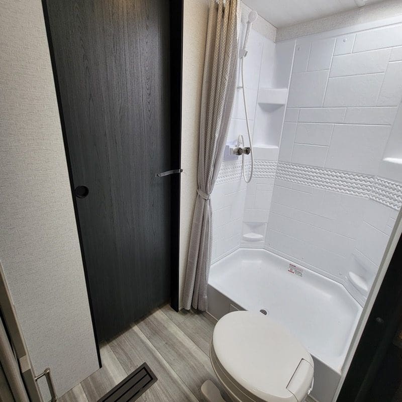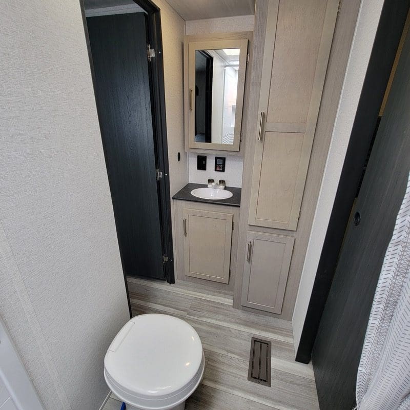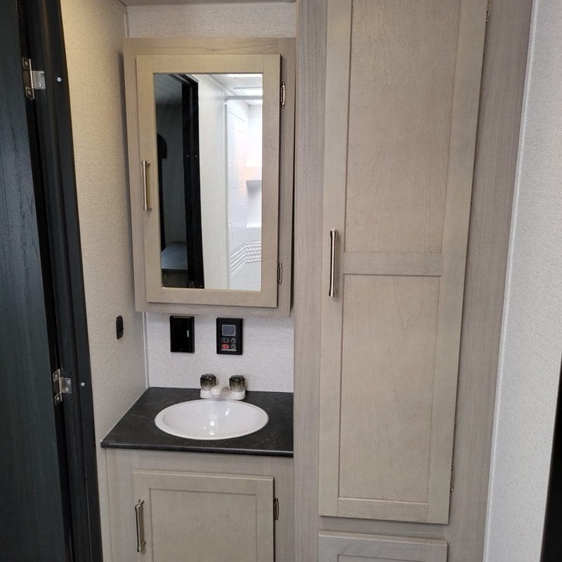 Available at Stone’s RV, the 2024 Keystone Springdale 281RK is a 33-foot travel trailer featuring a rear kitchen floor plan with dual slide-outs. This unit sleeps four people and offers an open-concept living area with theater seating and U-shaped dinette. The layout includes a front queen bedroom, full walk-through bathroom, and rear kitchen with dual pantries. Dry weight 7,411 lbs, GVWR 9,620 lbs, hitch weight 825 lbs.