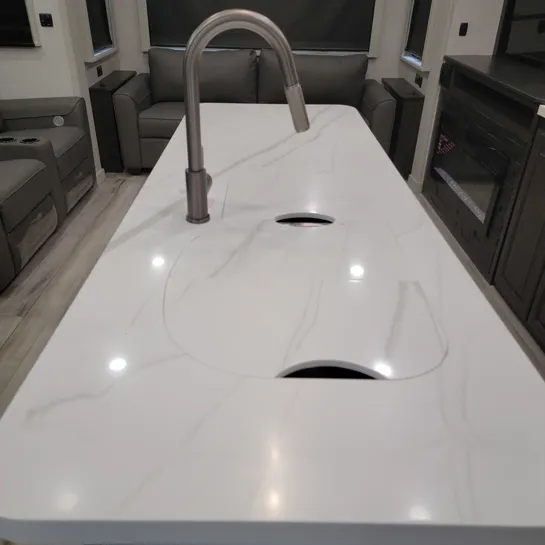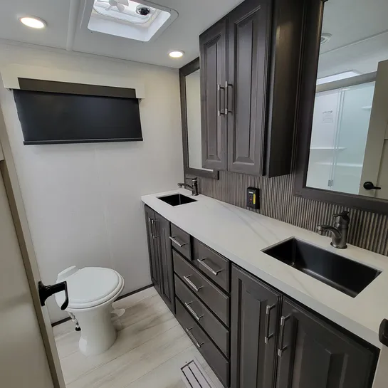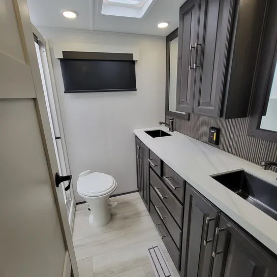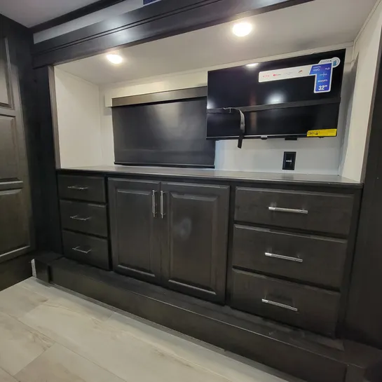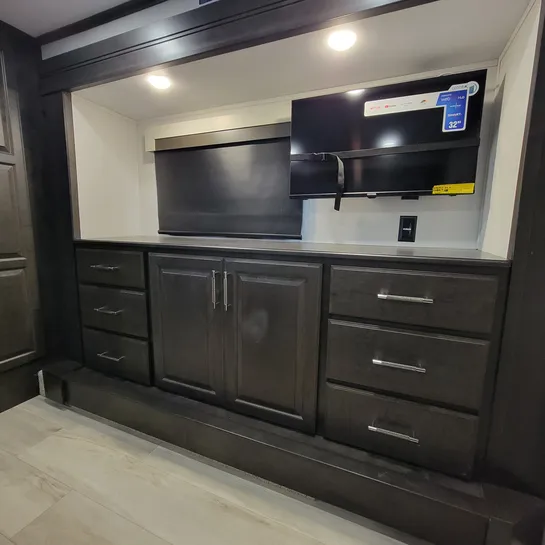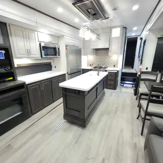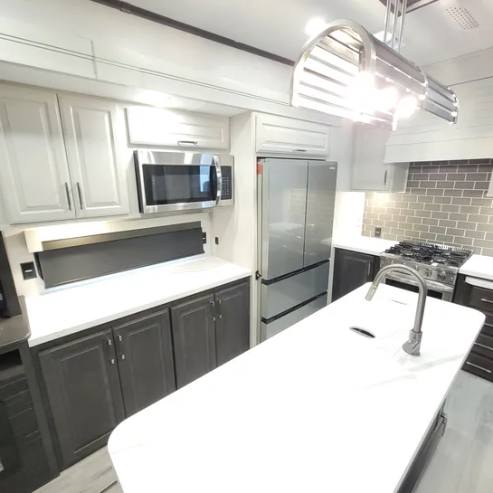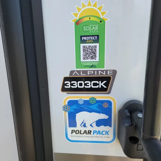 The 2025 Keystone RV Alpine 3303CK is a luxury fifth-wheel trailer designed for comfortable travel, featuring a spacious floorplan, high-end finishes, and numerous amenities. It boasts a wide-body construction, residential-style comforts, and modern design elements.