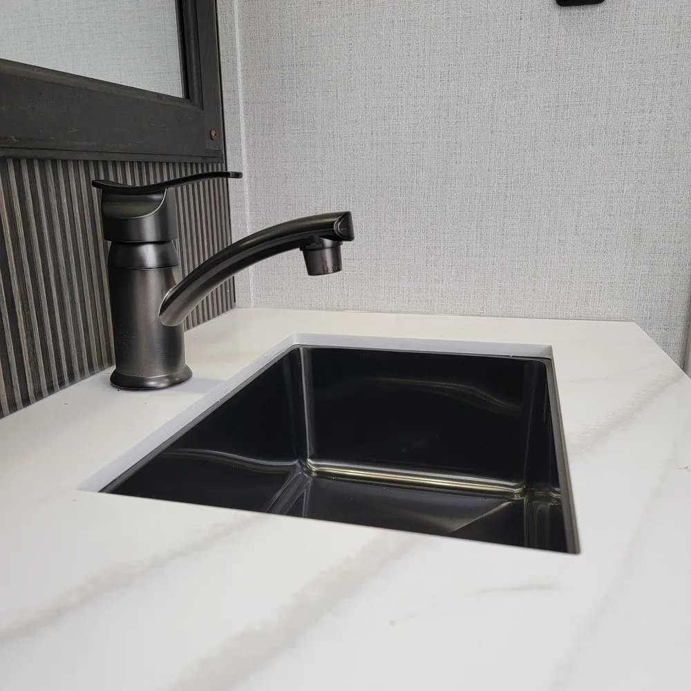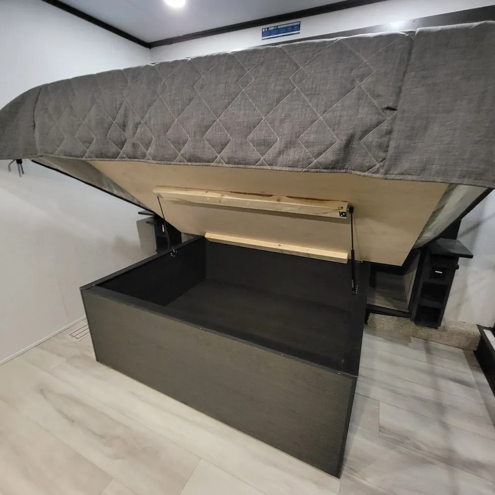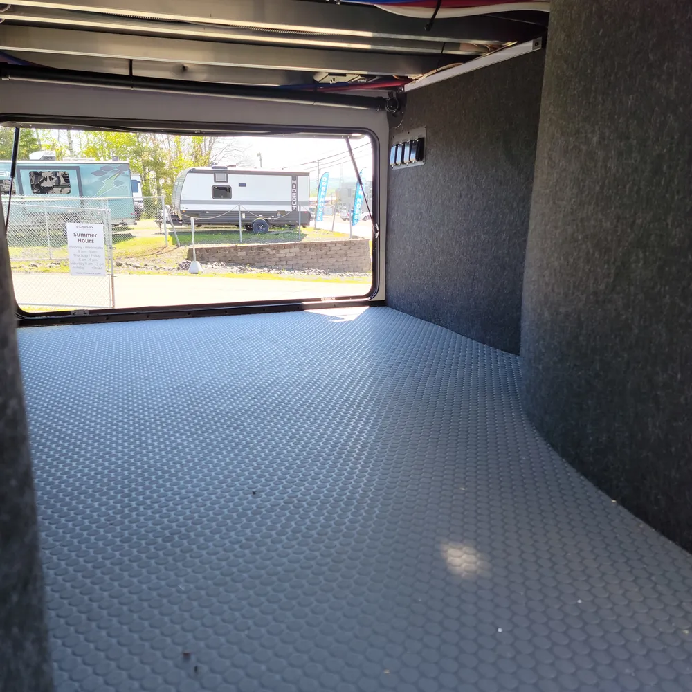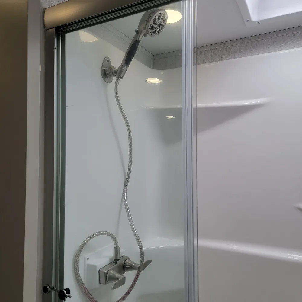 Built for the camping season. The Alpine 3303CK features heated and enclosed underbelly protection, an on-demand water heater, and in-floor heating ducts to keep you comfortable from spring through fall at Atlantic Canada campgrounds. The exterior includes Lippert strut-assisted SolidSteps, Hitch Vision with LED lighting, a power patio awning with adjustable arms, slide awnings, an outside shower with hot and cold water, and 200 cubic feet of heated basement storage with class A style dual-latch slam doors.