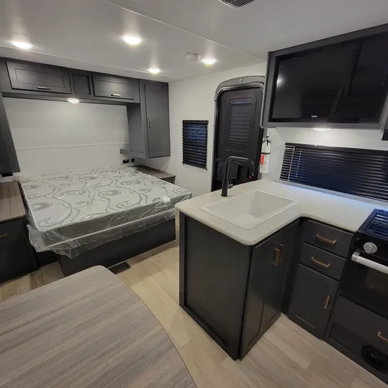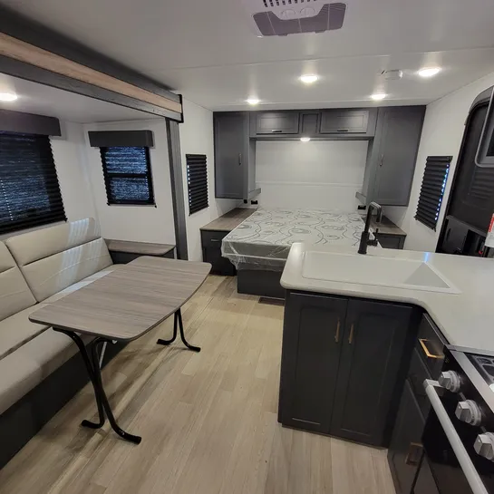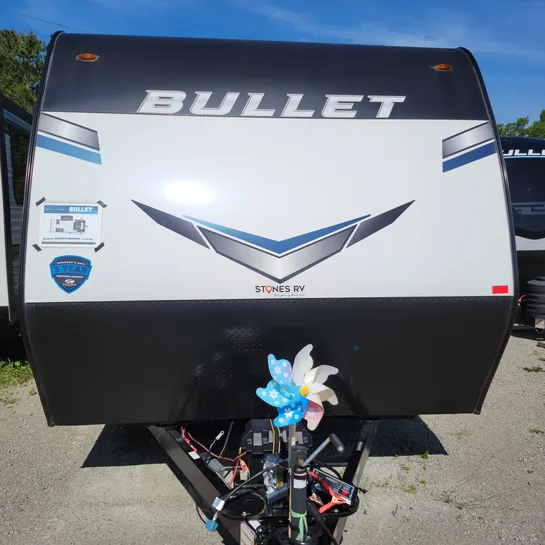 The 2025 Keystone RV Bullet Classic 1840RB is a compact travel trailer designed for couples, offering comfort and convenience. It features a mid-kitchen layout with a microwave, oven, and refrigerator, and includes a jack-knife sofa slide-out that converts into sleeping space for a guest. The trailer also boasts a full bathroom, convenient storage, and is designed for easy camping with features like SolarFlex readiness and a durable construction.