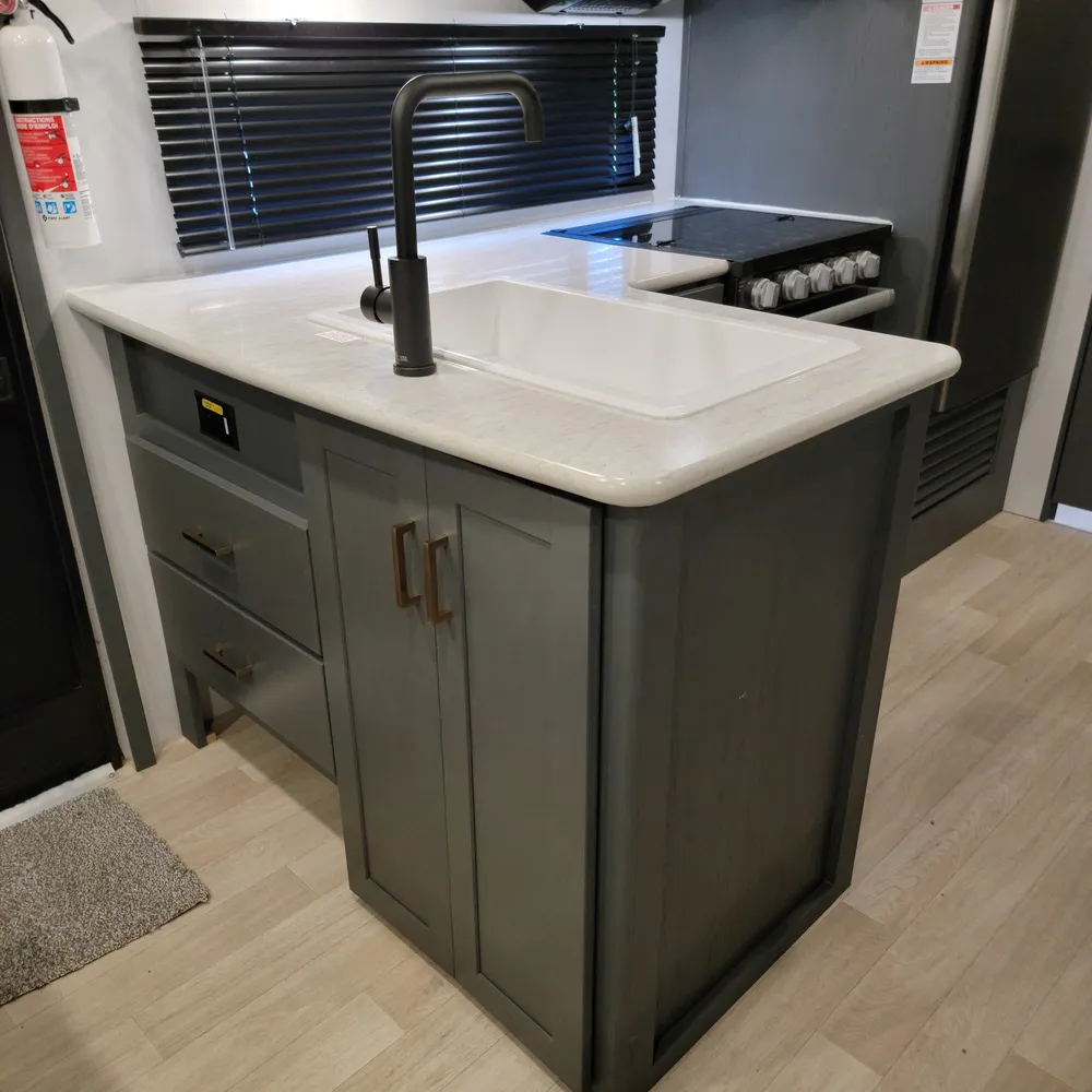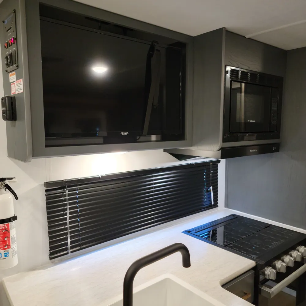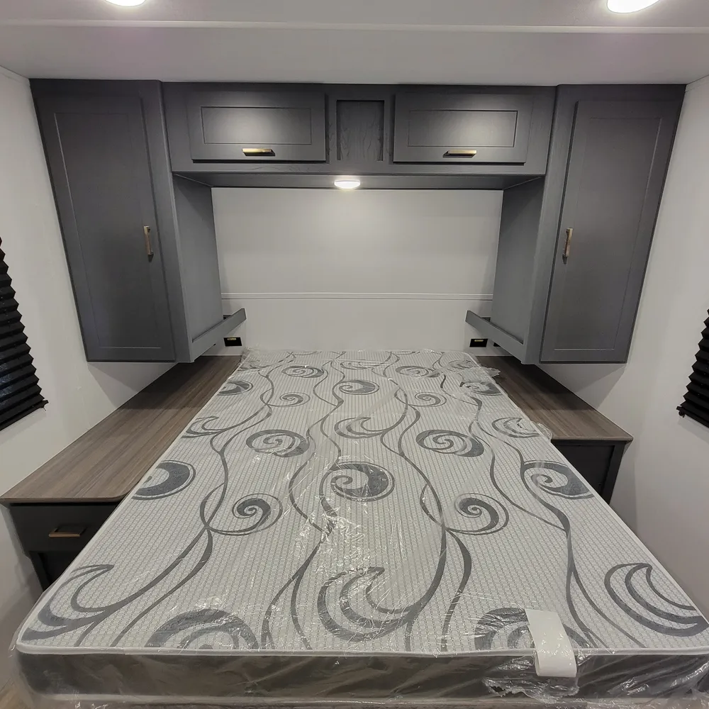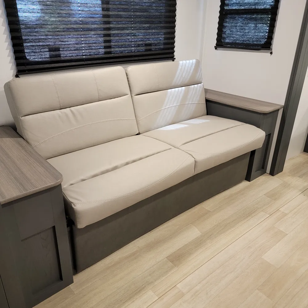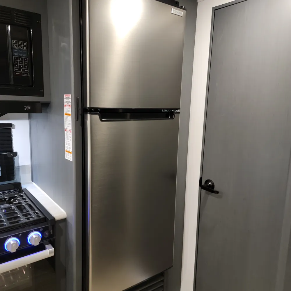 Equipped for the camping season with a 15,000 BTU air conditioner and 30,000 BTU furnace. A tankless water heater, HyperDeck flooring, power awning, and exterior shower round out the package on this lightweight and capable travel trailer.