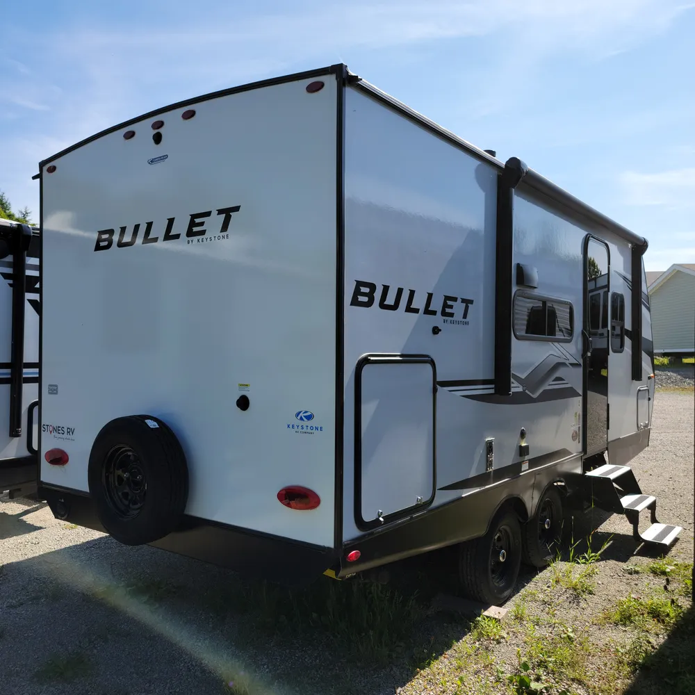 In stock at Stone’s RV, the 2025 Keystone Bullet Classic 1840RB is a 22′-11″ front bedroom, rear bath travel trailer that sleeps up to 3 people. With a dry weight of 4,420 lbs, GVWR of 6,430 lbs, and hitch weight of 560 lbs, the Bullet Classic 1840RB tows easily behind most half-ton trucks, making it a great fit for couples or small families heading to Atlantic Canada campgrounds.