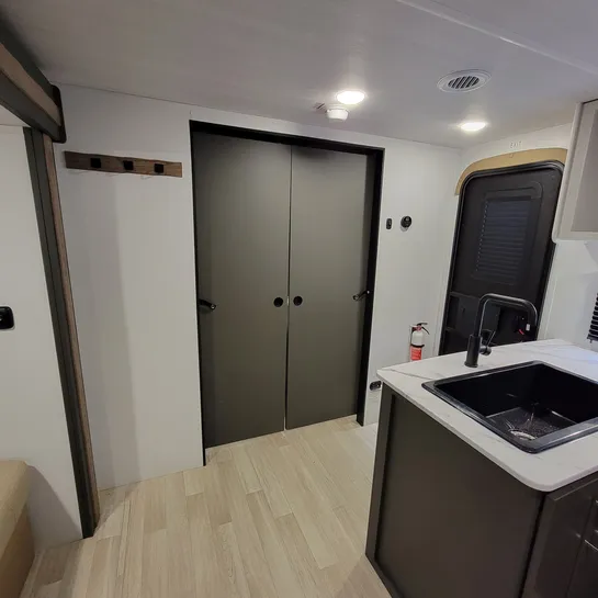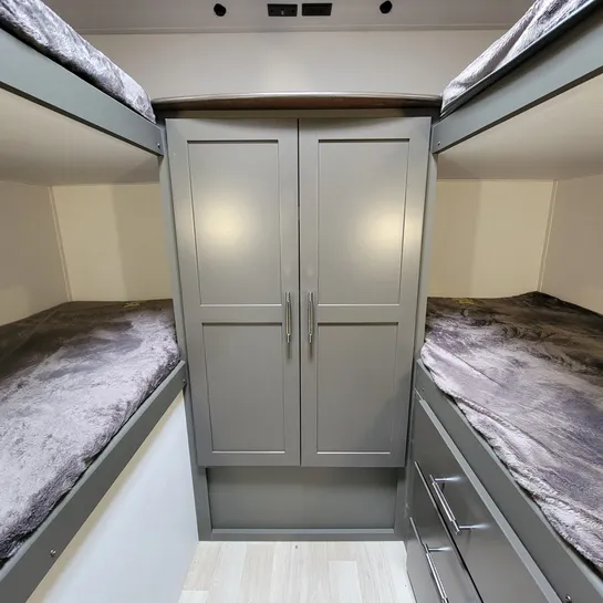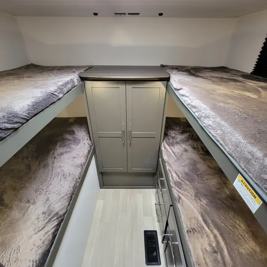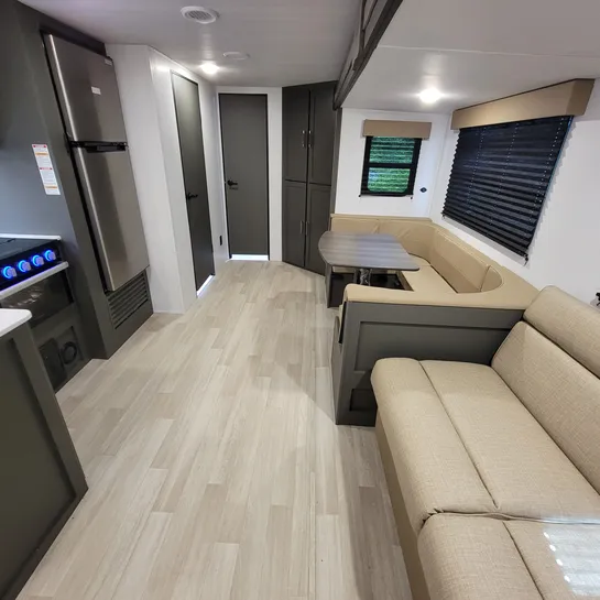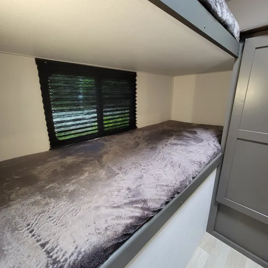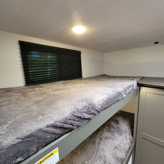 The 2025 Keystone Bullet Classic 2840QB is a family-friendly travel trailer with a quad bunkhouse, a front bedroom, and U-shaped dinette. It’s designed for comfortable family travel with a private bunkroom, a separate front bedroom with a queen bed, and a spacious living area with a slide-out. The bunkhouse features four beds, a wardrobe, and storage. The 2840QB is designed with families in mind, offering a comfortable and well-equipped space for camping and travel.