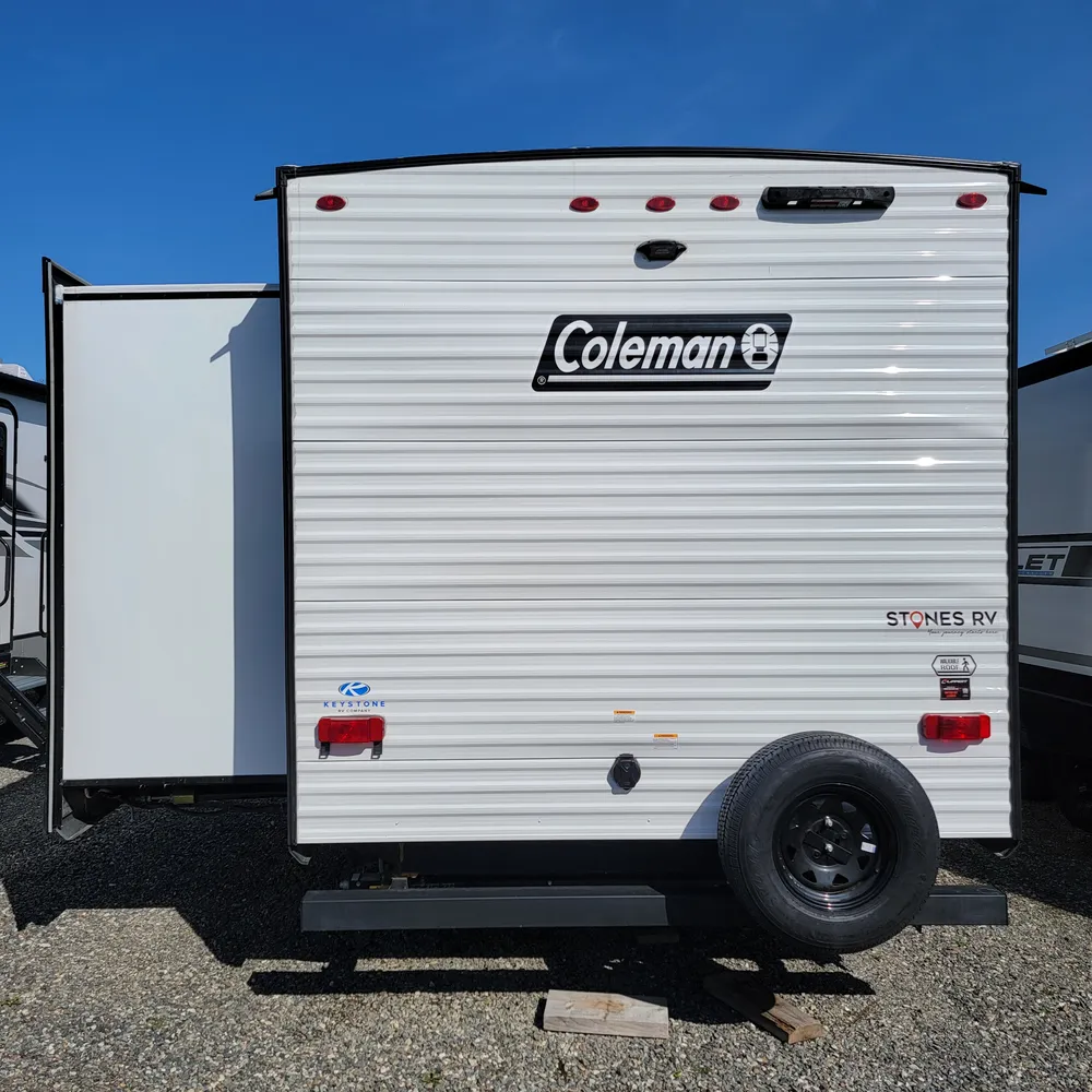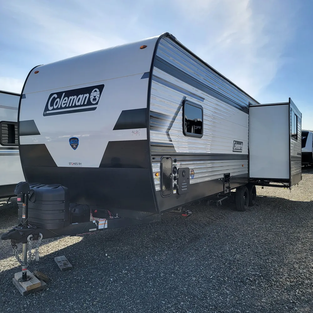 In stock at Stone’s RV, the 2025 Keystone Coleman Lantern 25REX is a 29’8″ travel trailer that sleeps up to 4 people. With a dry weight of 6,270 lbs and hitch weight of 710 lbs, the Coleman Lantern 25REX tows comfortably behind a half-ton.