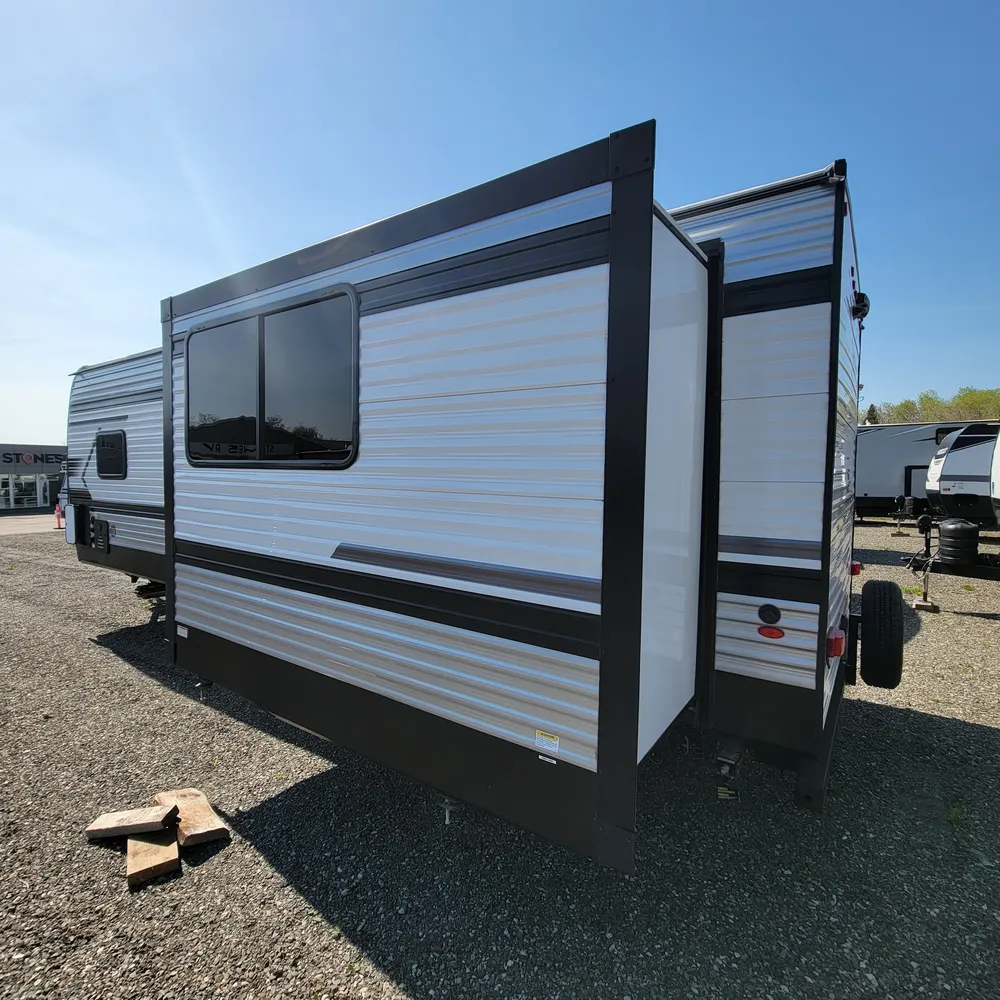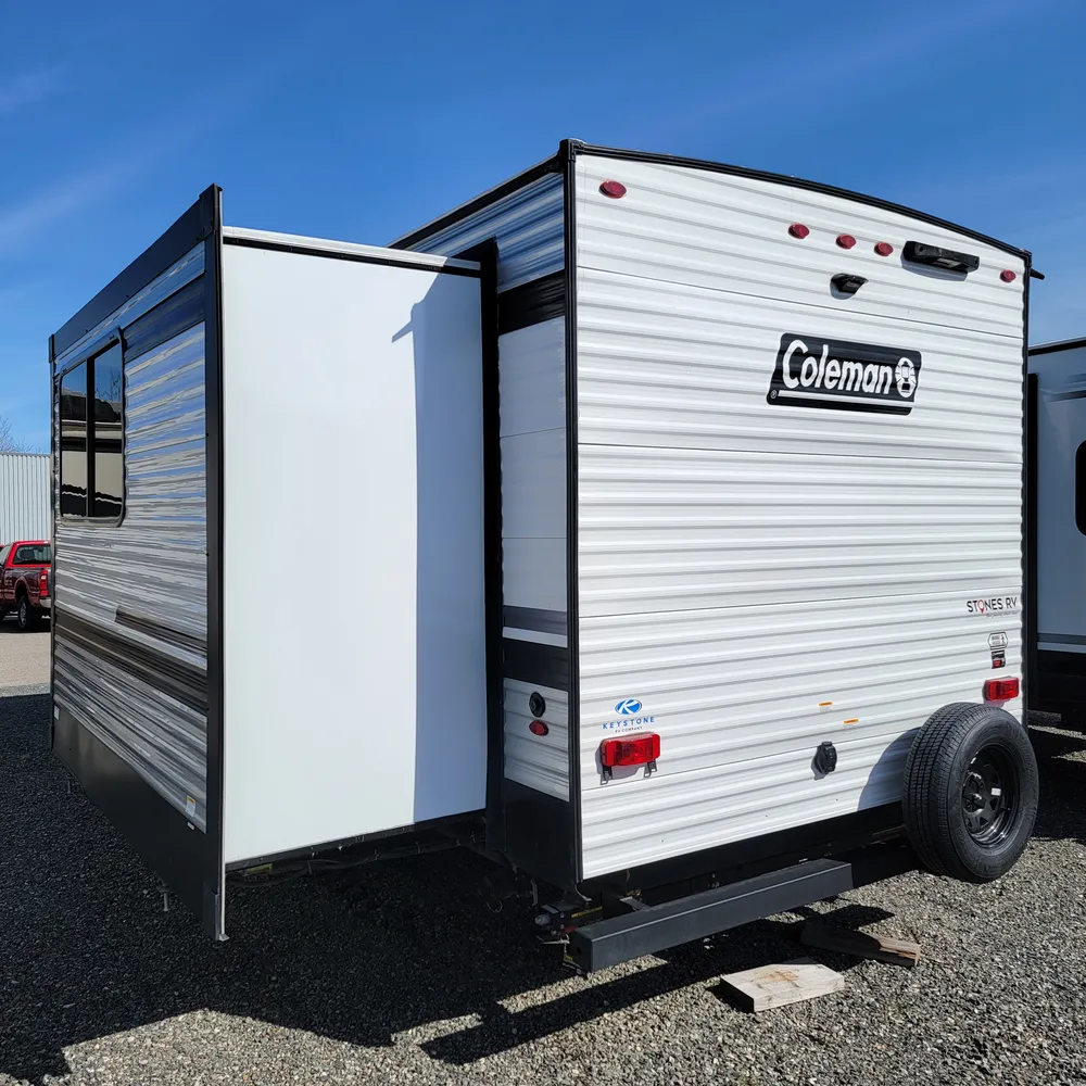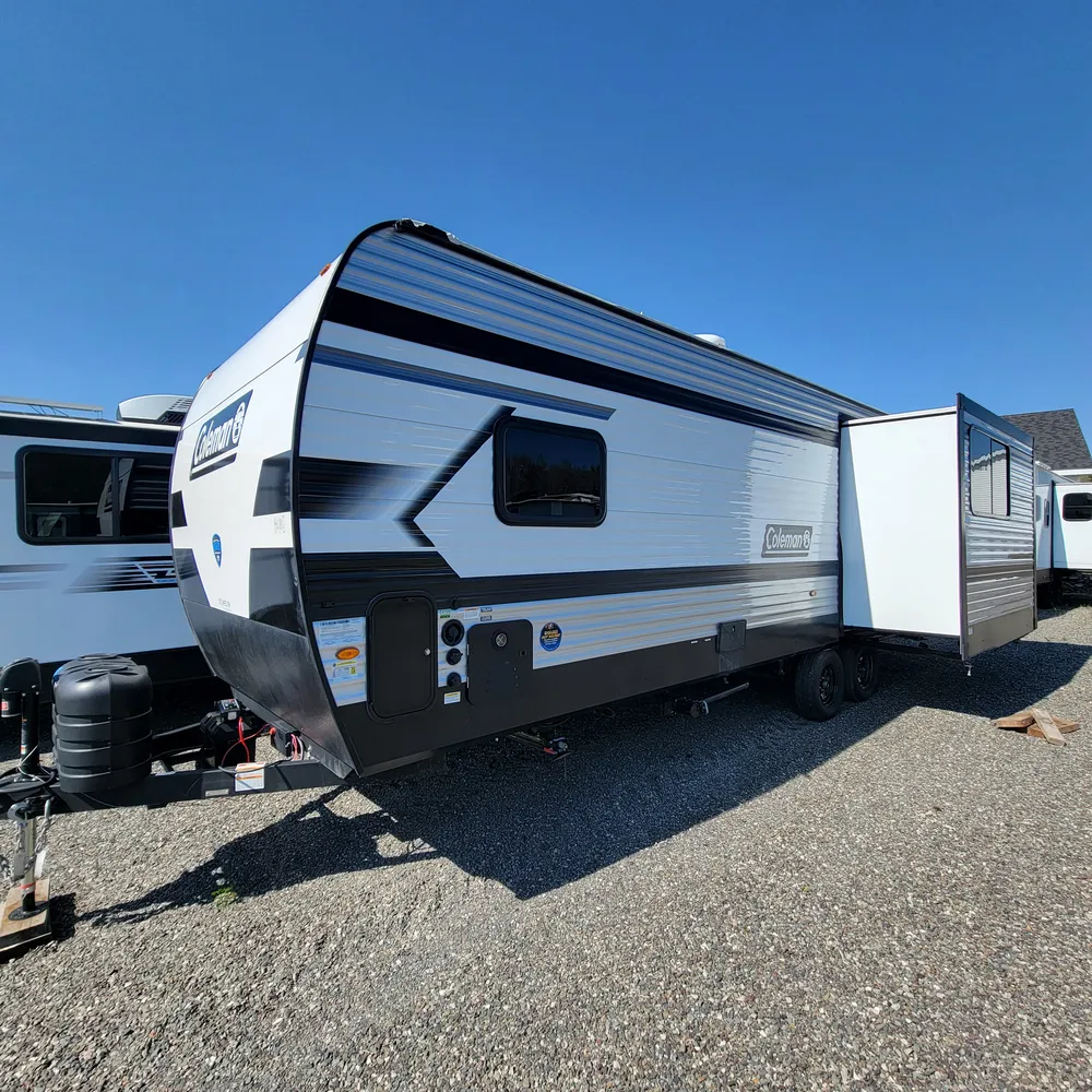 In stock at Stone’s RV, the 2025 Keystone Coleman Lantern 25REX is a 29’8″ travel trailer that sleeps up to 4 people. With a dry weight of 6,270 lbs and hitch weight of 710 lbs, the Coleman Lantern 25REX tows well behind a half-ton and suits couples or small families camping across Atlantic Canada.