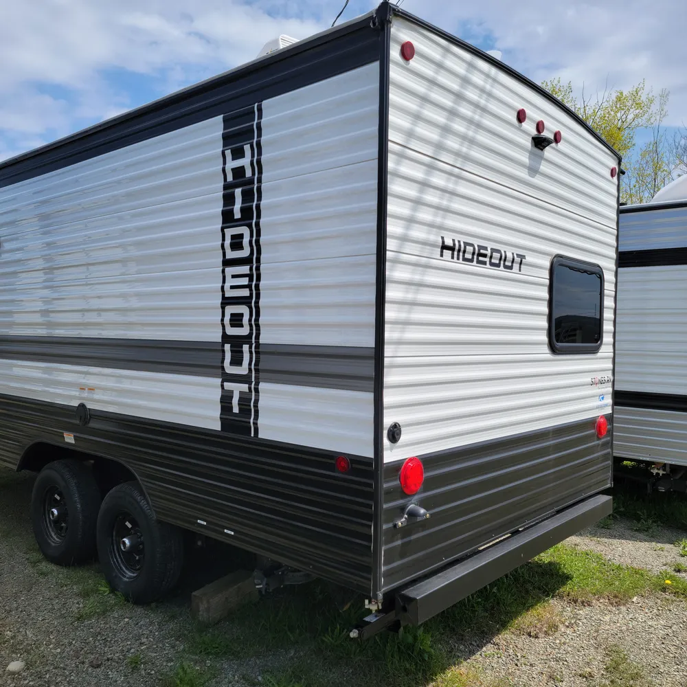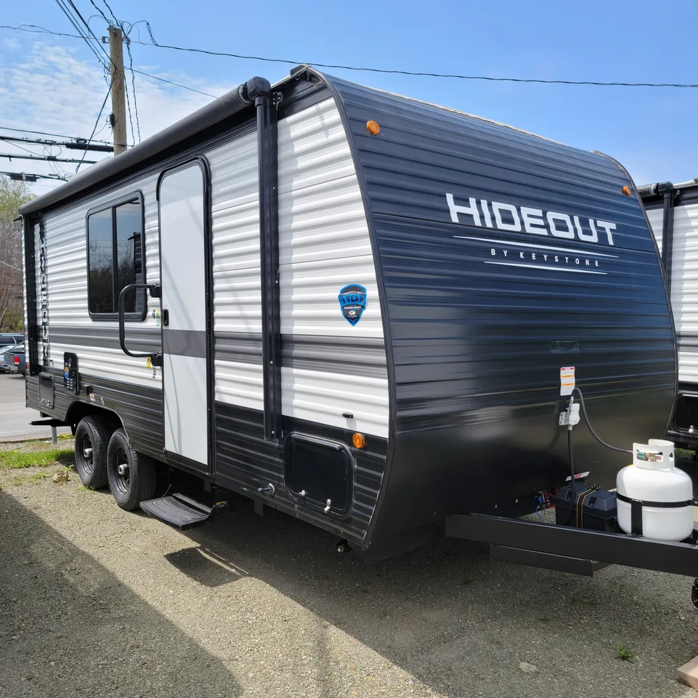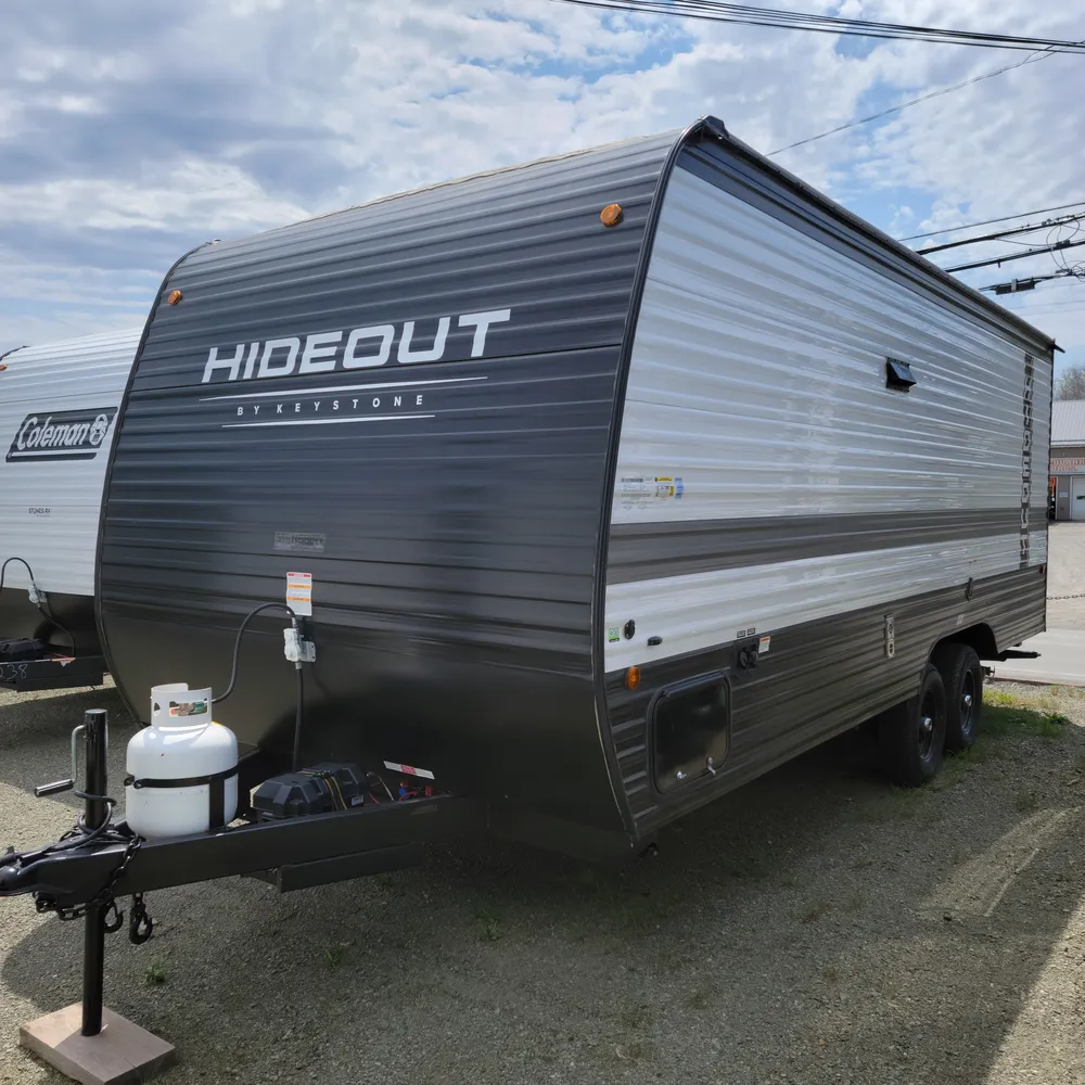 The 2025 Hideout 230MBBH is a single-axle travel trailer from Keystone RV, offering a compact and versatile floorplan designed for smaller trucks or SUVs. It features a Murphy bed, booth dinette, kitchen, and a full bath, along with double-size bunks.