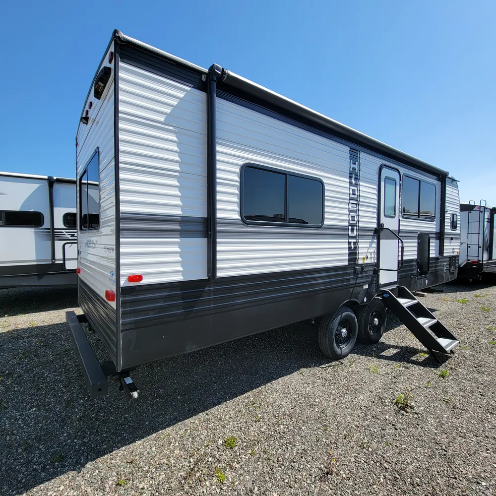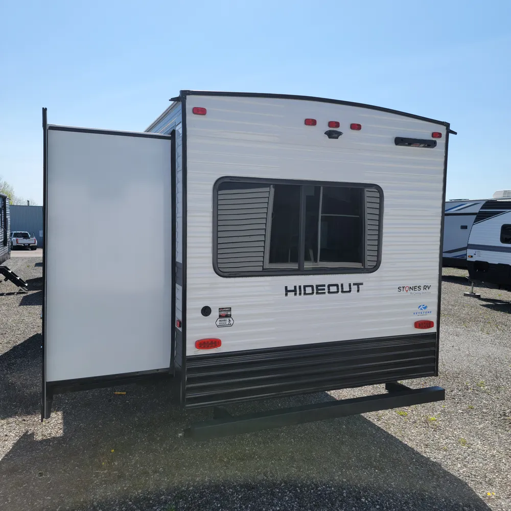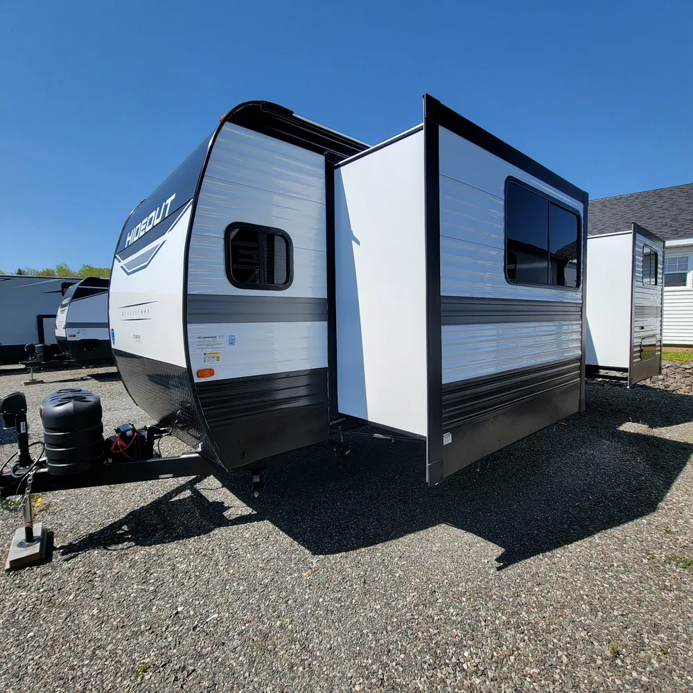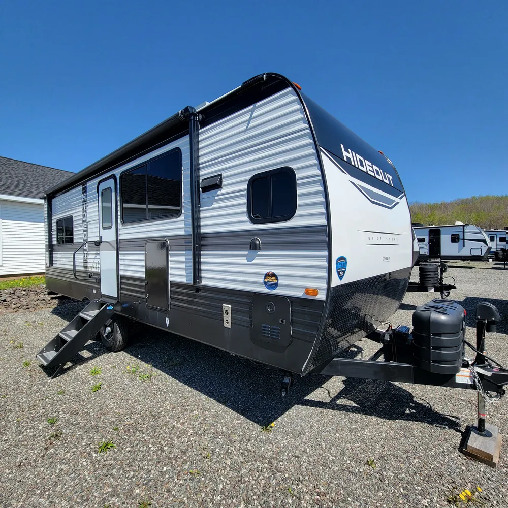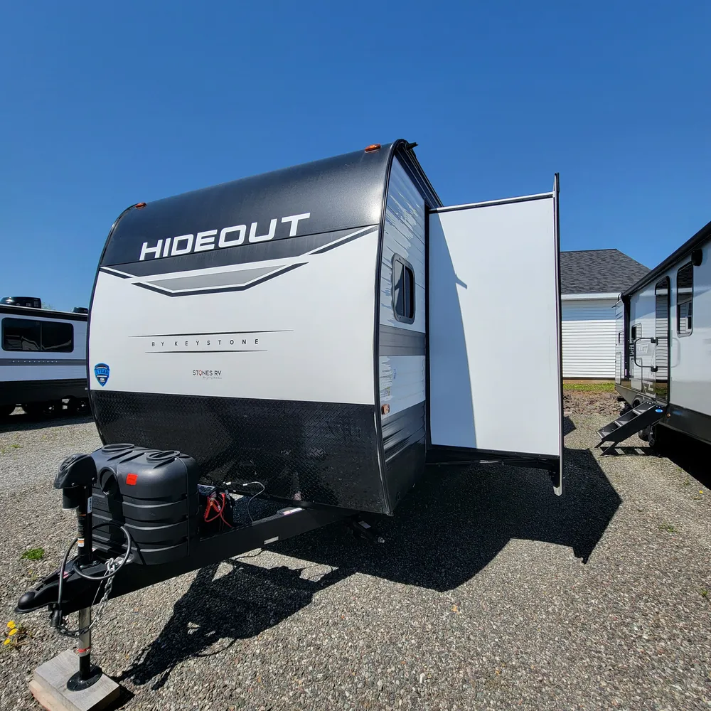 In stock at Stone’s RV, the 2025 Keystone Hideout 24FKS is a 28’8″ travel trailer that sleeps up to 4 people. With a dry weight of 6,445 lbs and hitch weight of 833 lbs, the Hideout 24FKS tows comfortably behind a half-ton truck and suits couples or small families heading to Atlantic Canada campgrounds.