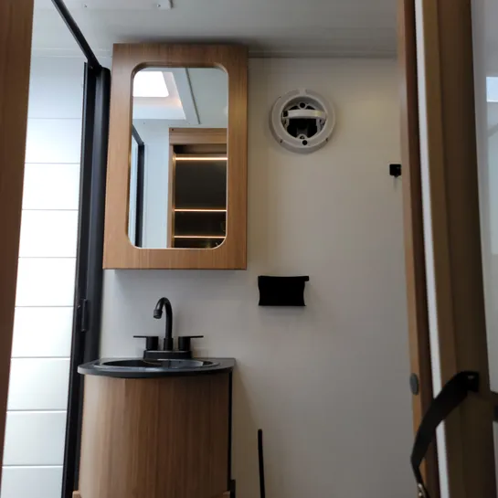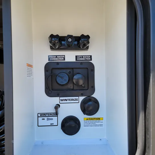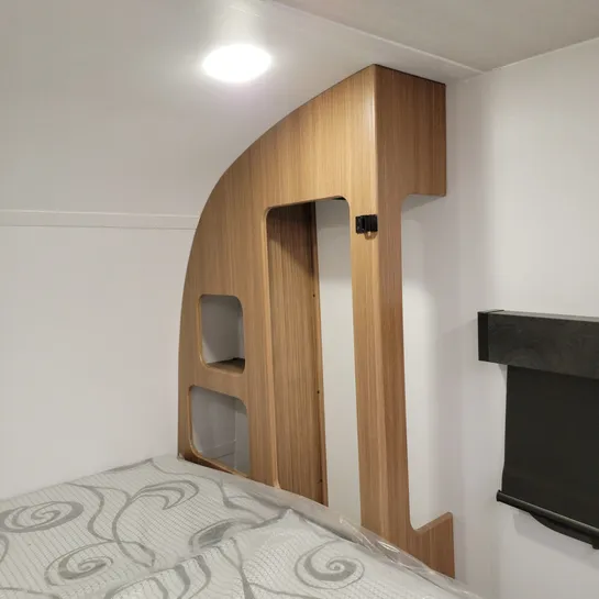 The exterior includes a sleeker aerodynamic front cap, improved insulation, and an LED strip lighting system, making it suitable for three-season travel in Canada and added convenience.