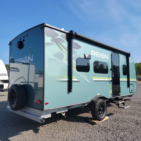 The 2025 Keystone Reign 18RB is a compact, single-axle travel trailer designed for couples seeking a balance of comfort and ruggedness.