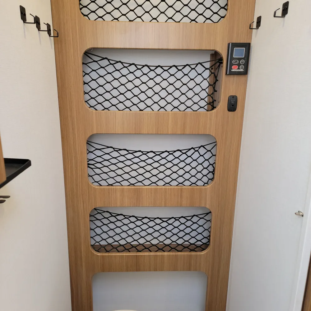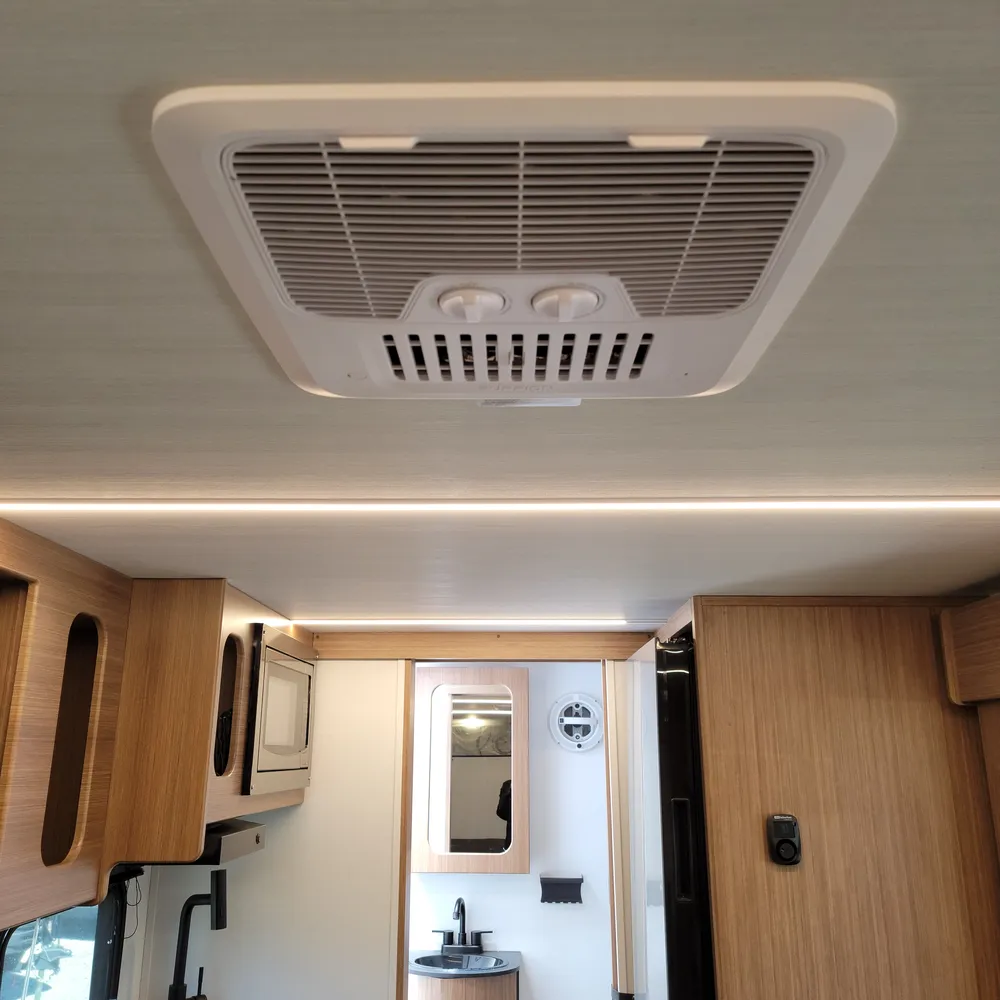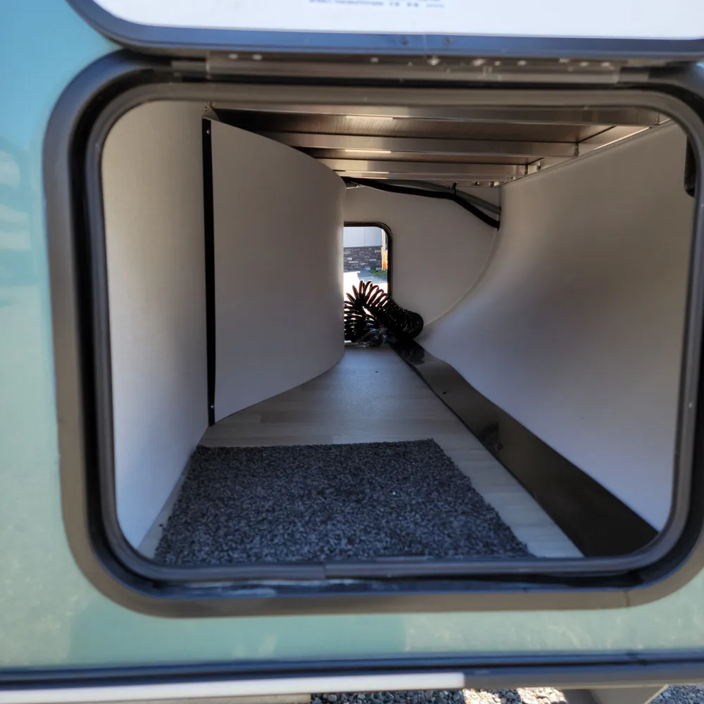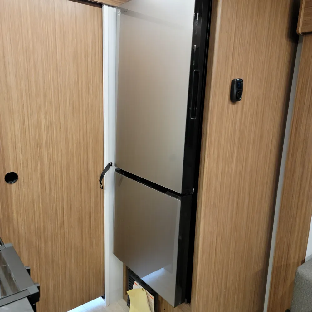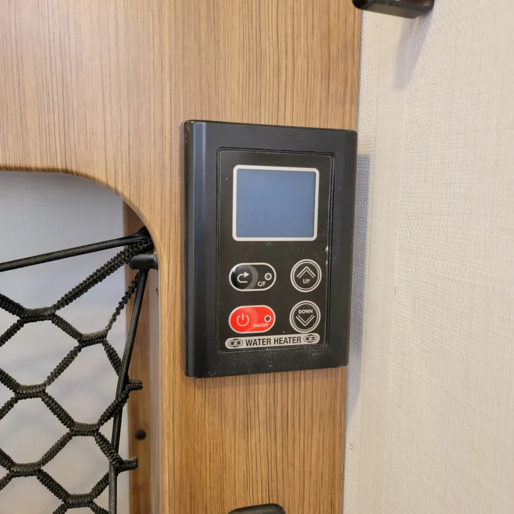 A Suburban tankless water heater, 13,500 BTU air conditioner, 20,000 BTU furnace, and 11′ power awning round out the Reign 18RB. The automotive-finished aluminum exterior, composite floor, and walkable roof are built to handle the camping season without fuss.