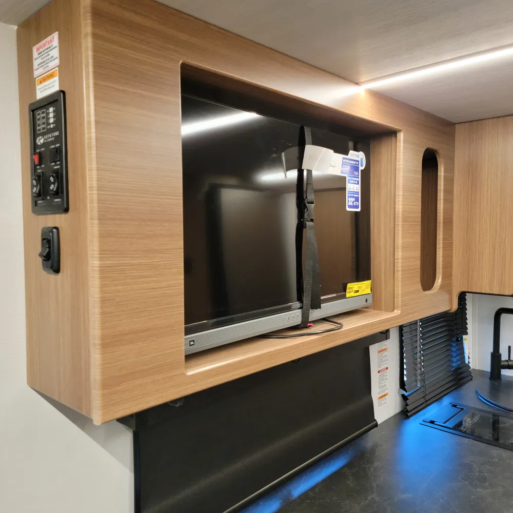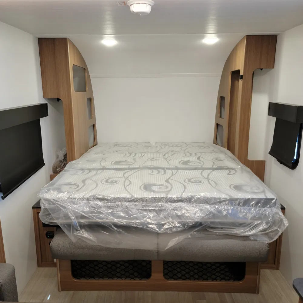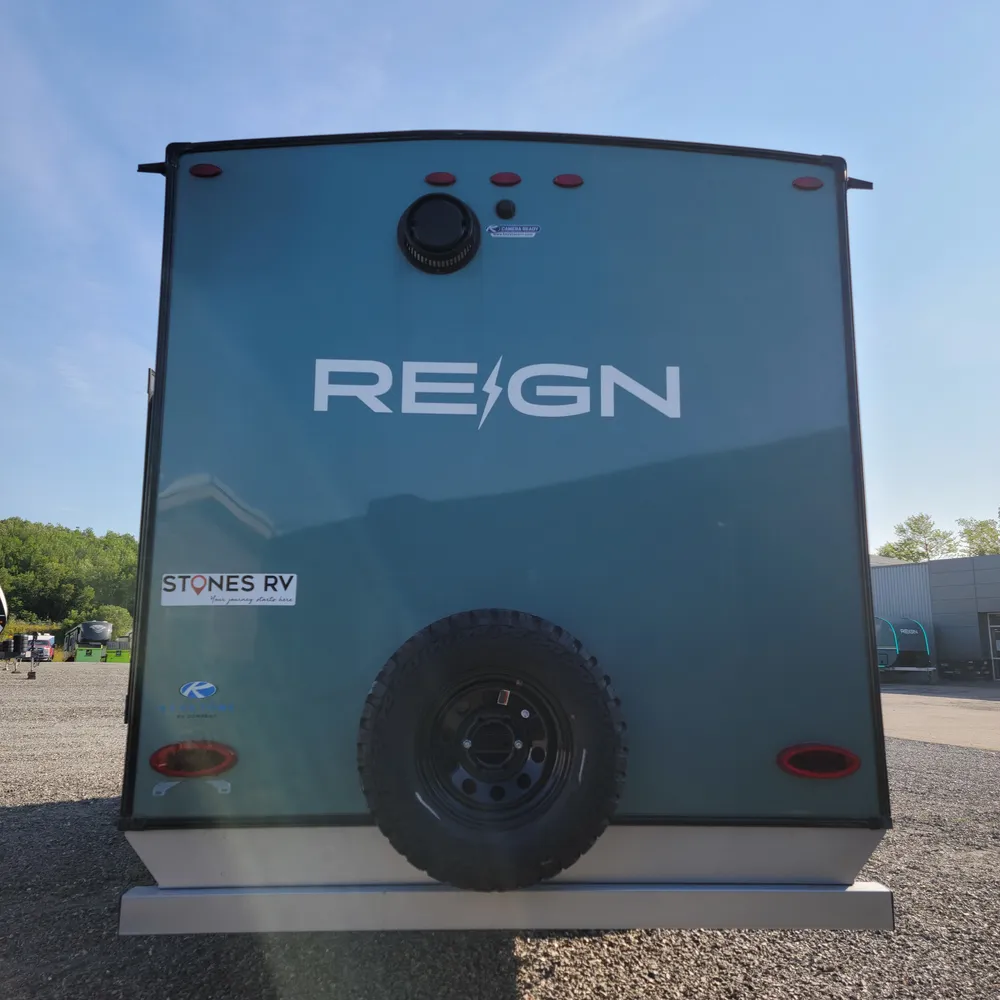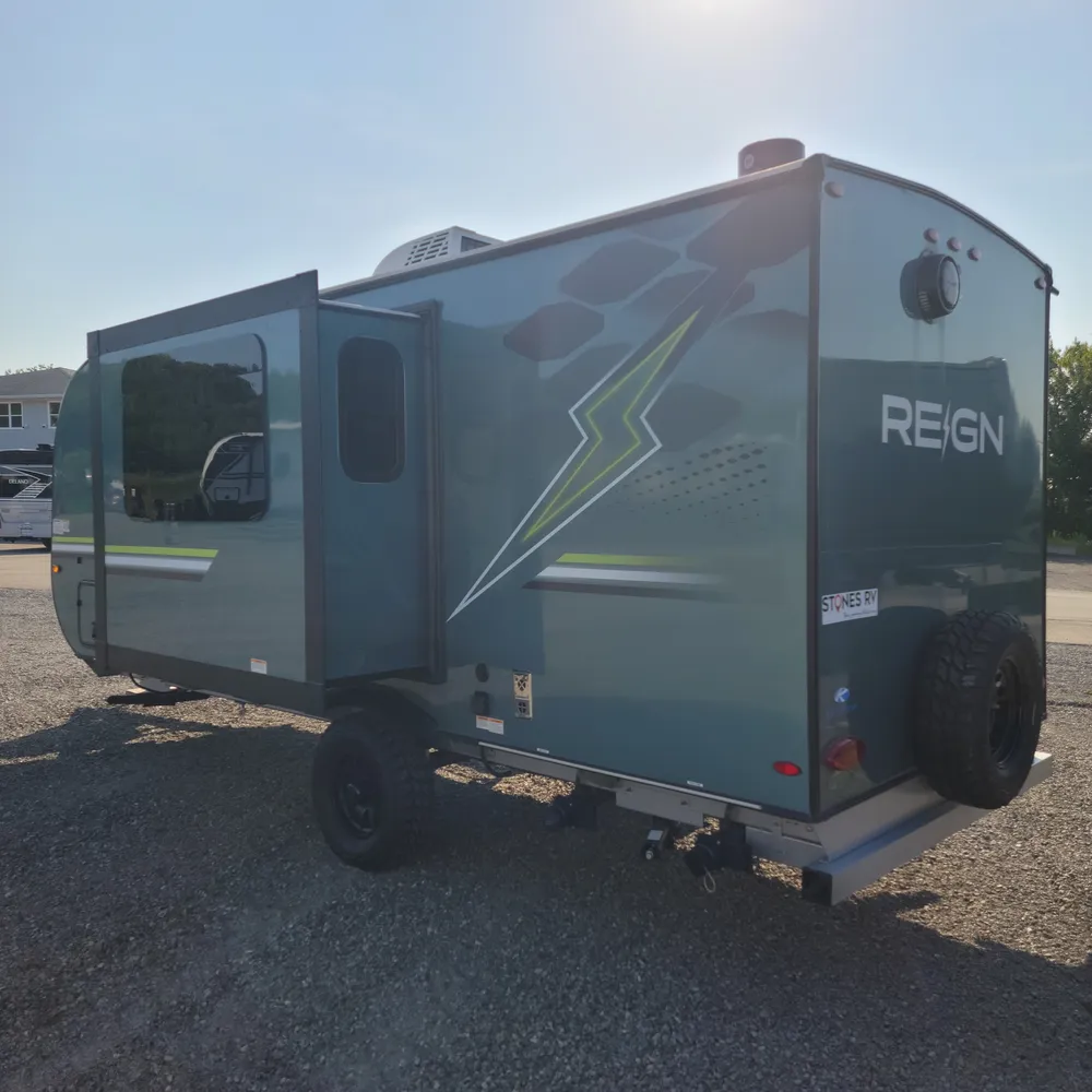 In stock at Stone’s RV, the 2025 Keystone Reign 18RB is a 22’8″ single-axle travel trailer that sleeps 3. With a dry weight of 3,995 lbs, the Reign 18RB tows behind most vehicles and gets into campgrounds that bigger trailers can’t.