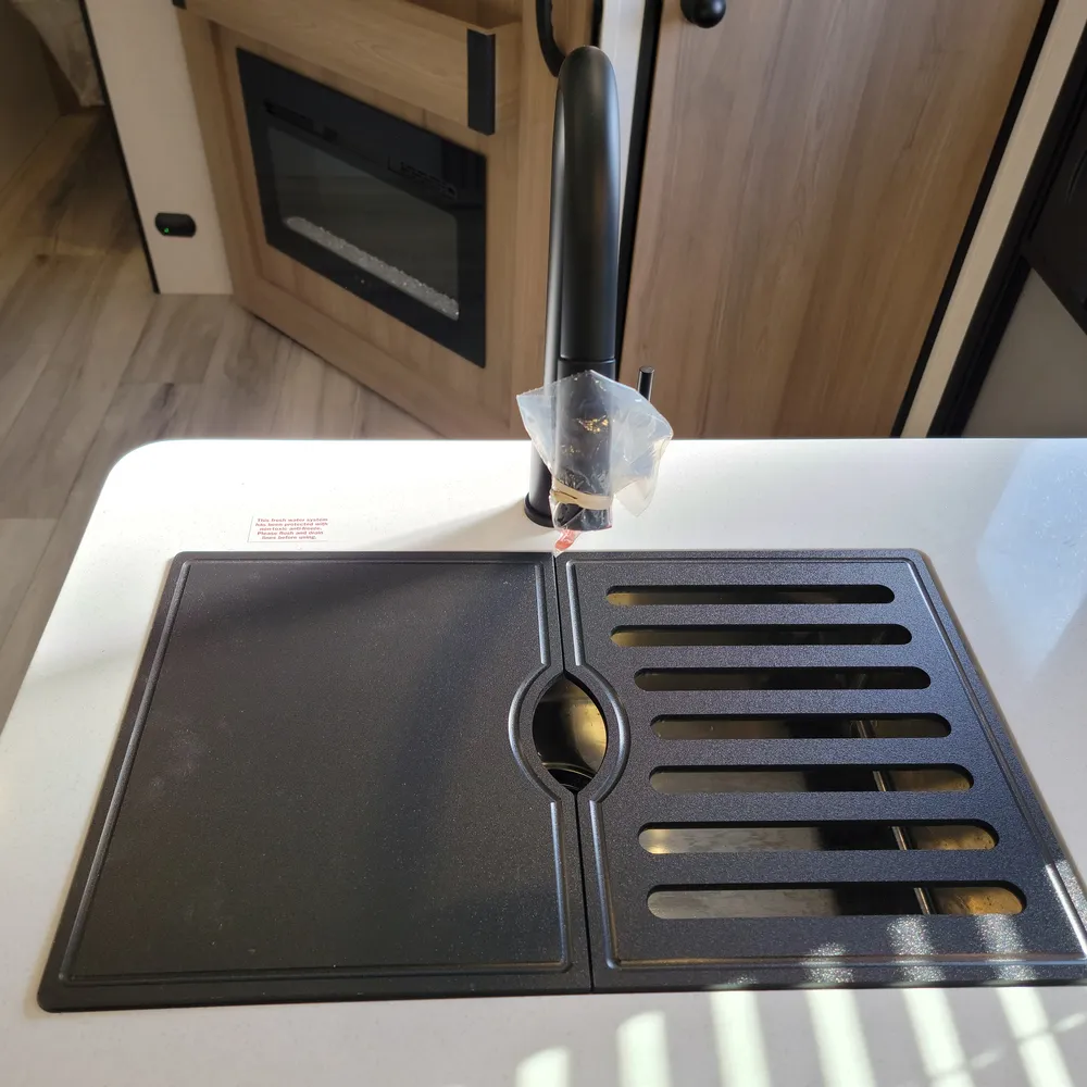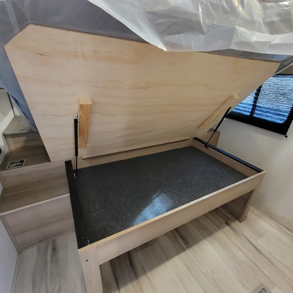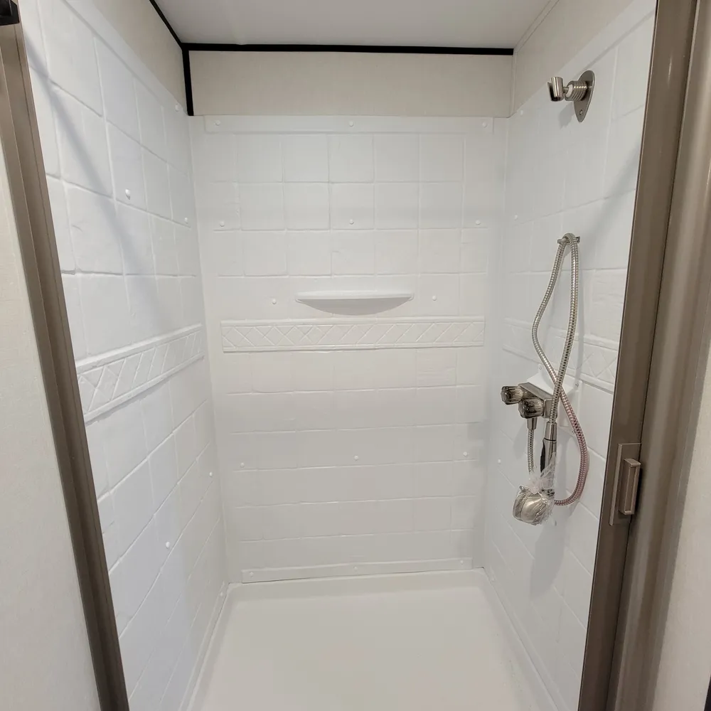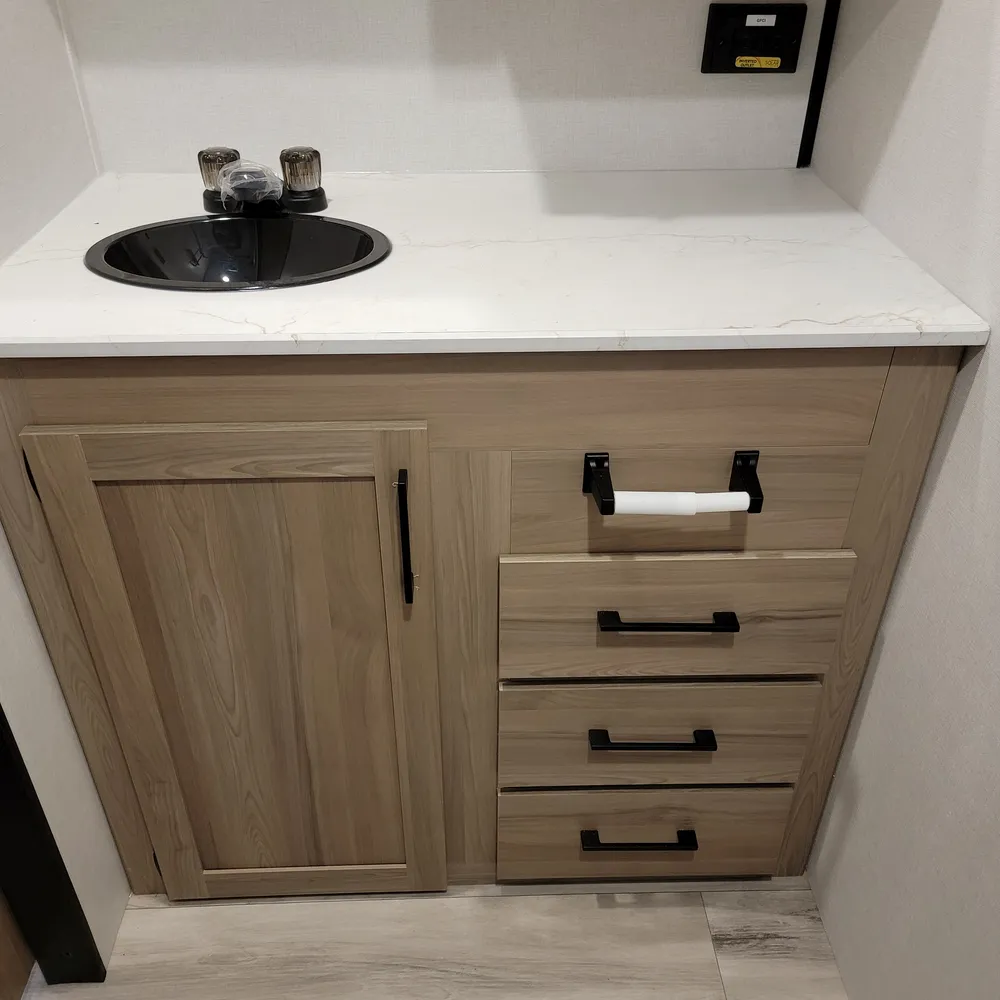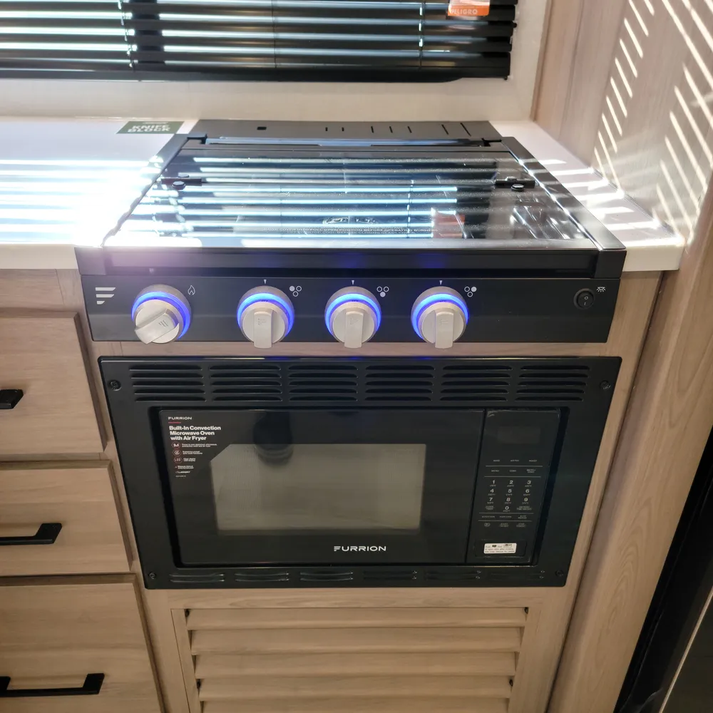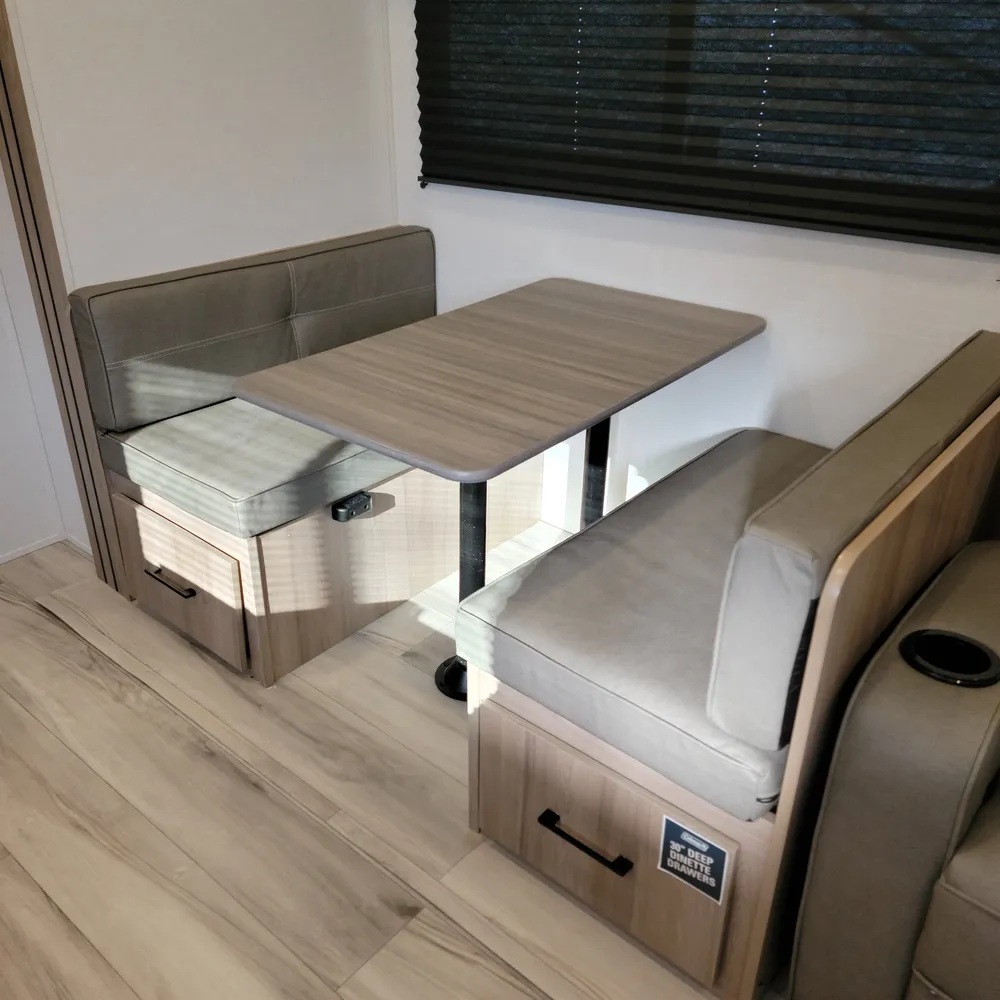 The 25RBS emphasizes livability with an 82-inch interior ceiling height and an expansive rear bathroom featuring an oversized 30″x40″ shower. The living area offers theater seating, an electric fireplace, and a full L-shaped kitchen with solid surface countertops and an air fryer/convection microwave. Outside, the 16-foot power awning and large pass-through storage offer great utility for your local adventures, making this a dependable choice for enjoying Nova Scotia’s parks and campgrounds.
