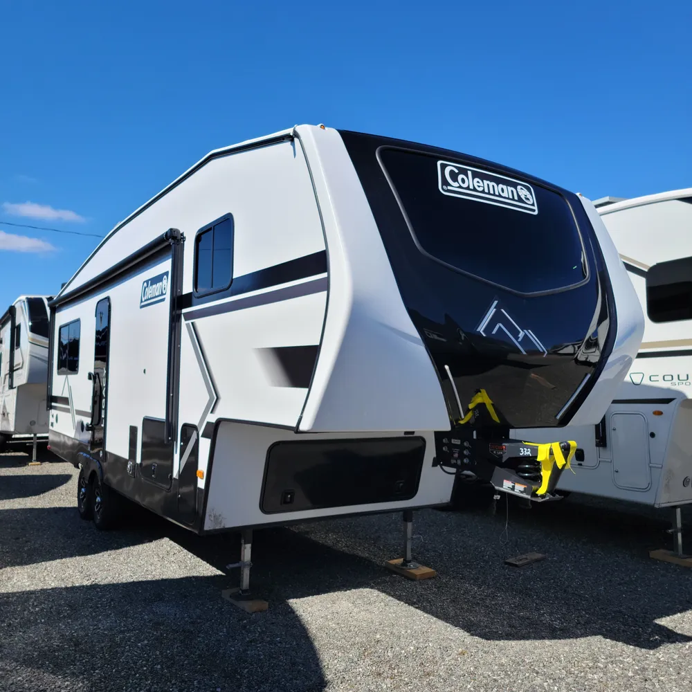 In stock at Stone’s RV. The 2026 Keystone RV Coleman Legacy 2400REX is a 29-foot rear entertainment fifth wheel sleeping 3 people. With a dry weight of 7,555 lbs and a GVWR of 9,500 lbs, the Legacy 2400REX offers 1,945 lbs of cargo capacity. This rear entertainment layout is built for couples and small families looking to enjoy Atlantic Canada’s campgrounds.