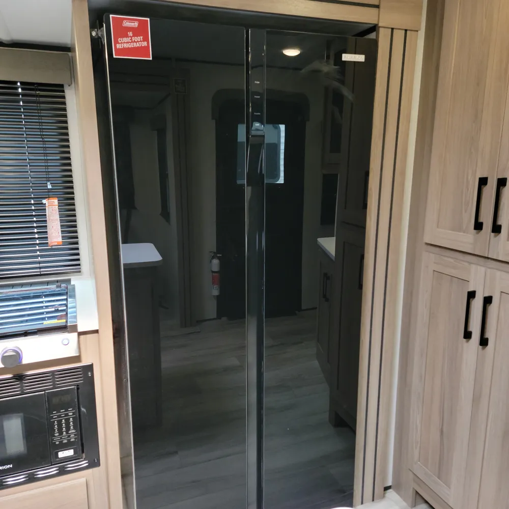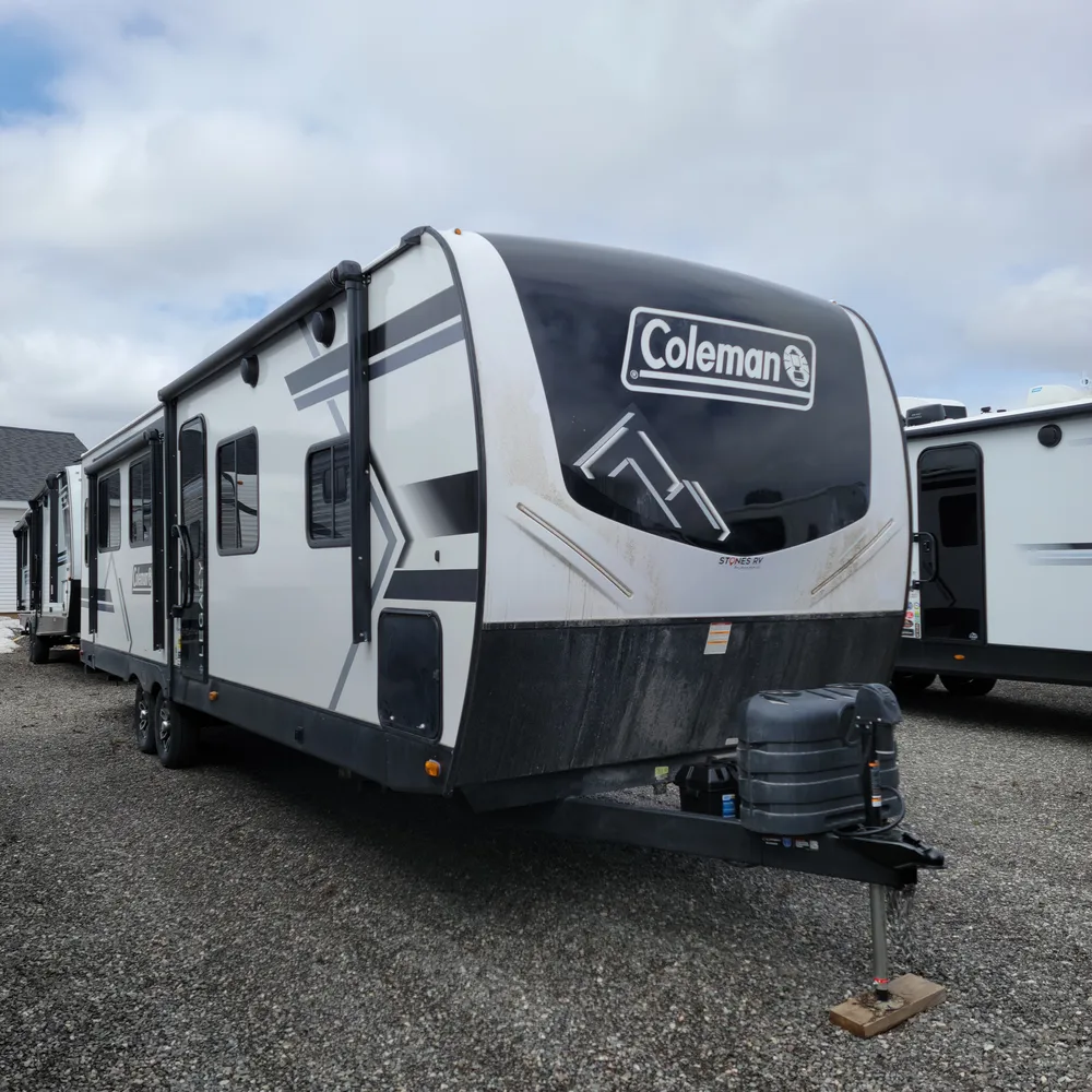 In stock at Stone’s RV, the 2026 Keystone Coleman Legacy 2950RL is a rear living travel trailer designed for couples seeking upscale comfort and space. At 35 feet long, this unit sleeps 6 people, weighs 7,235 lbs dry with a GVWR of 9,500 lbs and a hitch weight of 905 lbs, making it towable by most half-ton trucks while delivering residential amenities perfect for extended stays at Maritime campgrounds.