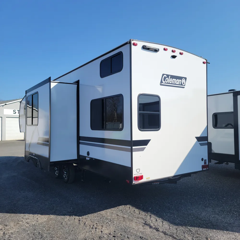 Available at Stone’s RV, the 2026 Keystone Coleman Legacy 3000LOFT is a dual-level bunkhouse fifth wheel built for families who need serious space. At 35 feet long, this unit can comfortably sleep 7 people, weighs 8,840 lbs dry with a GVWR of 11,500 lbs and a pin weight of 1,670 lbs, making it towable by a properly equipped 3/4-ton truck while delivering multi-generational comfort perfect for extended Maritime camping trips.