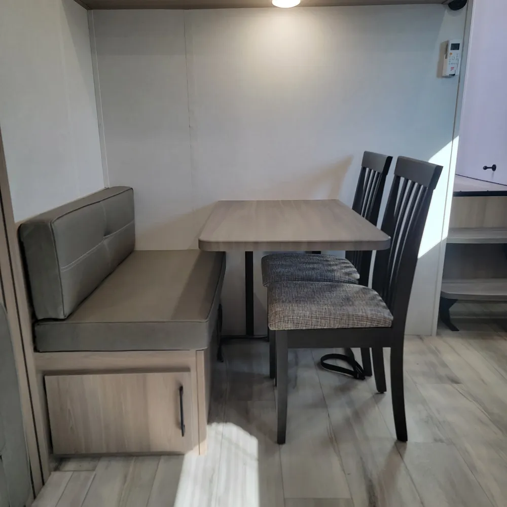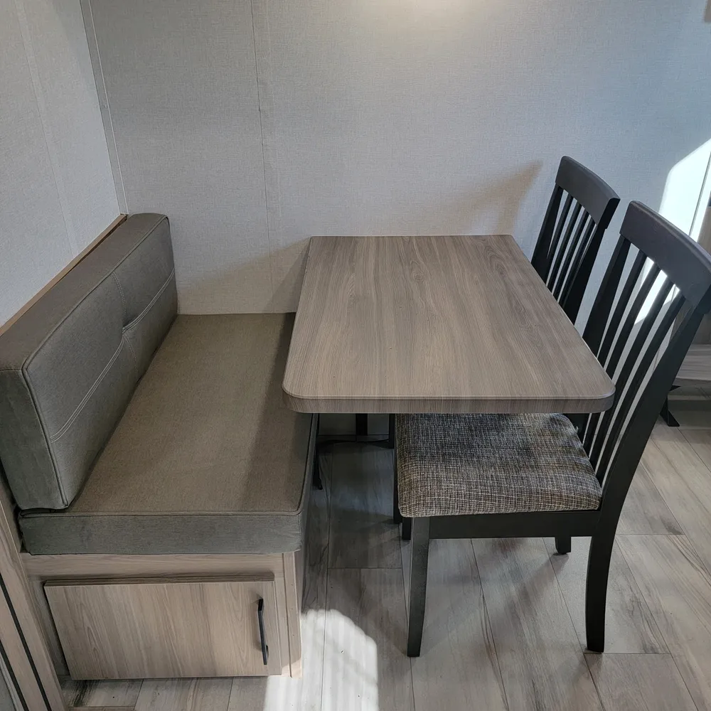 - Booth dinette with full-depth drawer underneath & 2 free standing chairs.