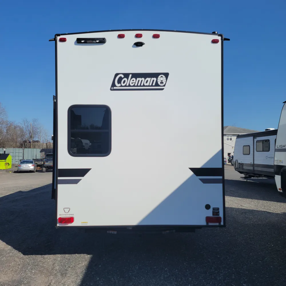 Available at Stone’s RV, the 2026 Keystone Coleman Legacy 3000LOFT is a bunkhouse fifth wheel built for families who like to have a dedicated kid space. At 35 feet long, this unit can comfortably sleep 7 people, weighs 8,840 lbs dry with a GVWR of 11,500 lbs and a pin weight of 1,670 lbs, making it towable by a properly equipped 3/4-ton truck while delivering family-focused features perfect for extended stays at Atlantic Canada campgrounds.