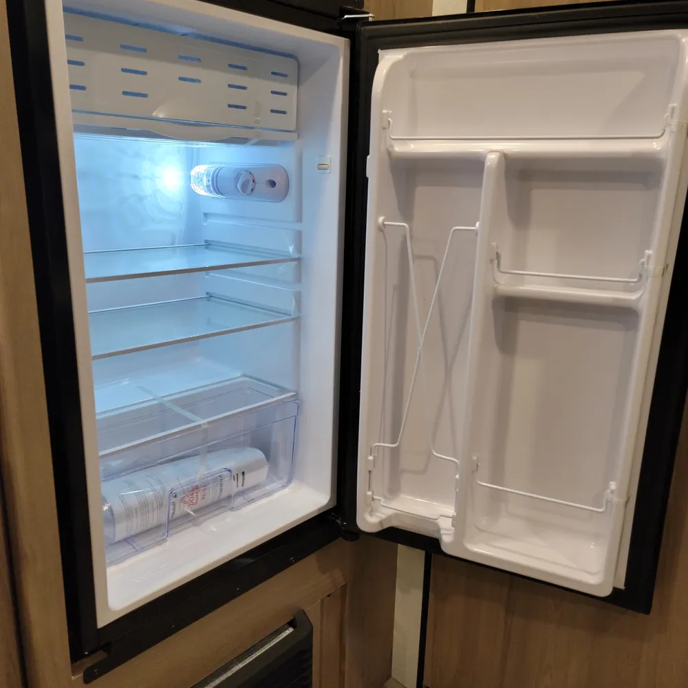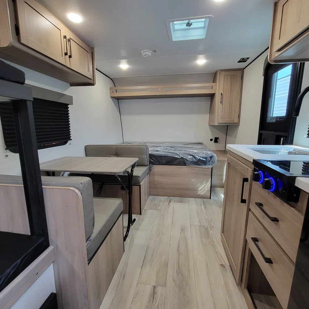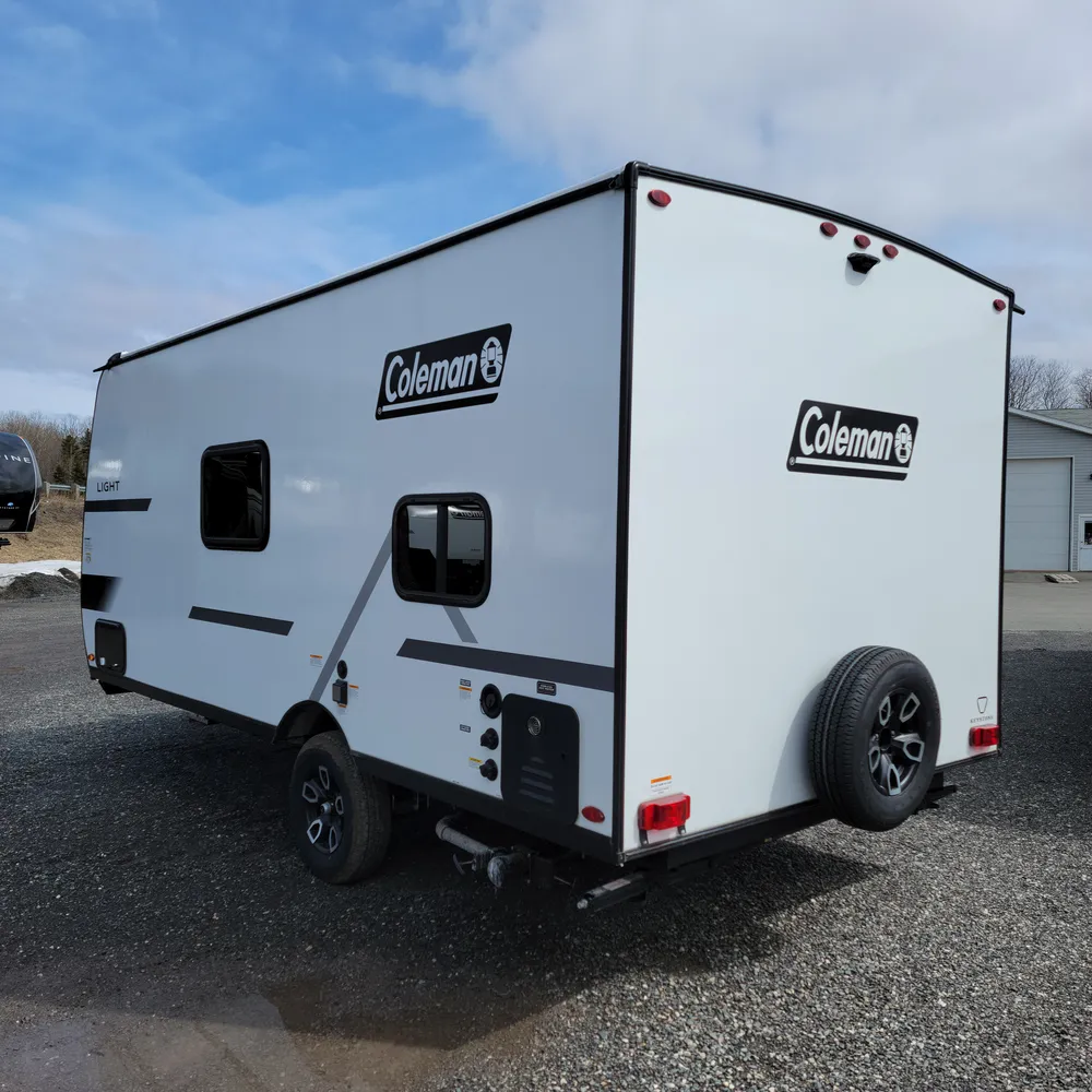 The Coleman Light 17BX includes an 8,000 BTU air conditioner and 20,000 BTU furnace for climate control throughout the camping season. The 42,000 BTU Suburban tankless water heater provides on-demand hot water, while the power tongue jack and power awning simplify setup. Full pass-through storage accommodates longer items, and LED lighting throughout enhances visibility and efficiency. The fiberglass exterior and aluminum rims deliver durability without excess weight, making this an ideal first-time RV or weekend camping trailer. This lightweight trailer is ready for Atlantic Canada family adventures.