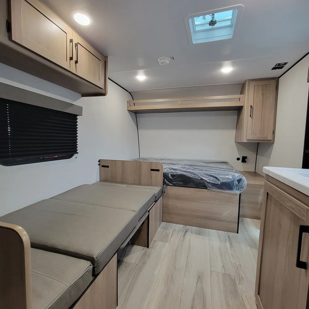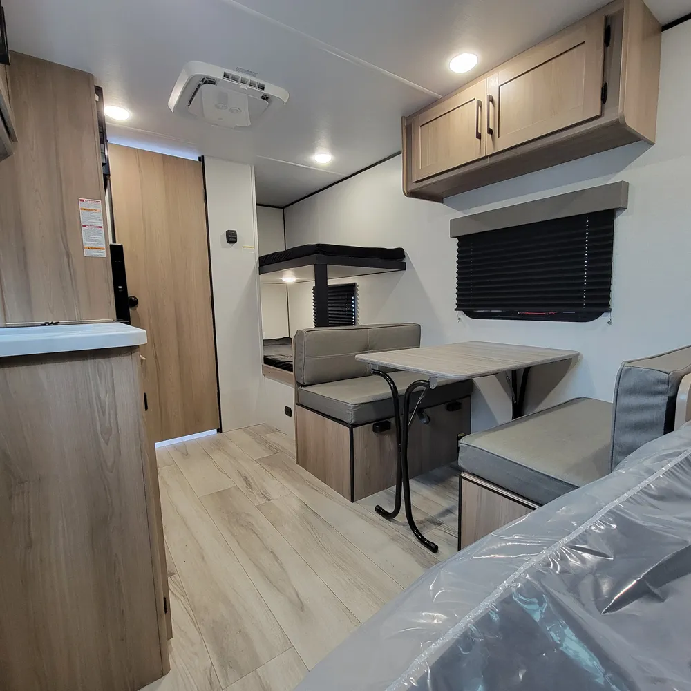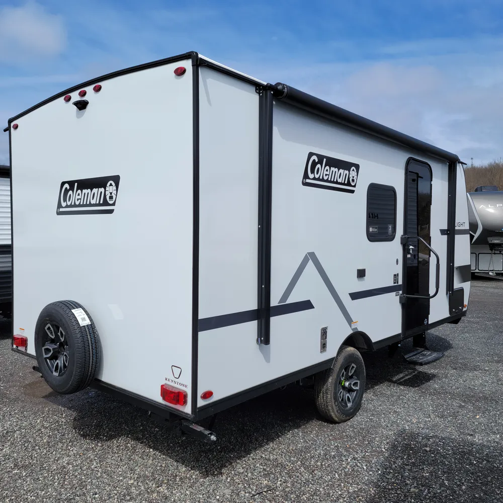 In stock at Stone’s RV, the 2026 Keystone Coleman Light 17BX is a compact bunkhouse travel trailer that delivers big value in a lightweight package. At 20 feet long, this unit sleeps 5 people, weighs 2,771 lbs dry with a GVWR of 4,000 lbs and a hitch weight of 325 lbs, making it towable by most SUVs and half-ton trucks while providing family-friendly comfort perfect for Maritime campground adventures.