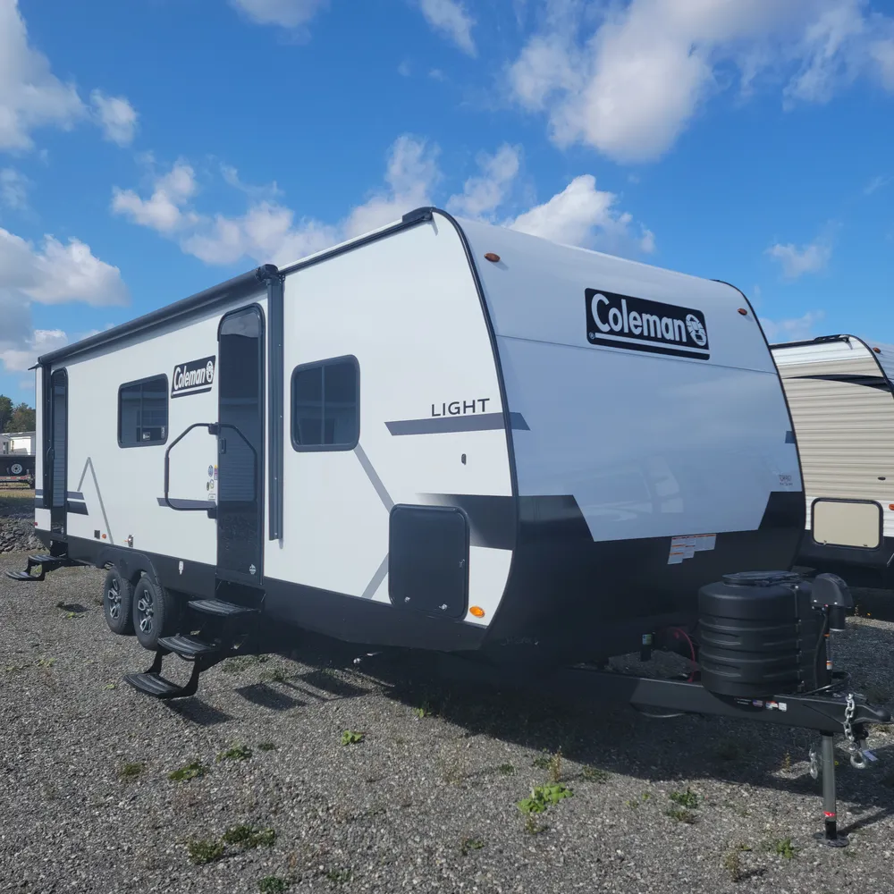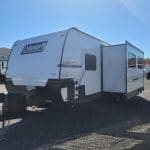 The Coleman Light 26BX is a great family trailer with bunk beds that sleeps 8. At 30 feet and 5065 lbs dry weight, it’s a lightweight option in its class.