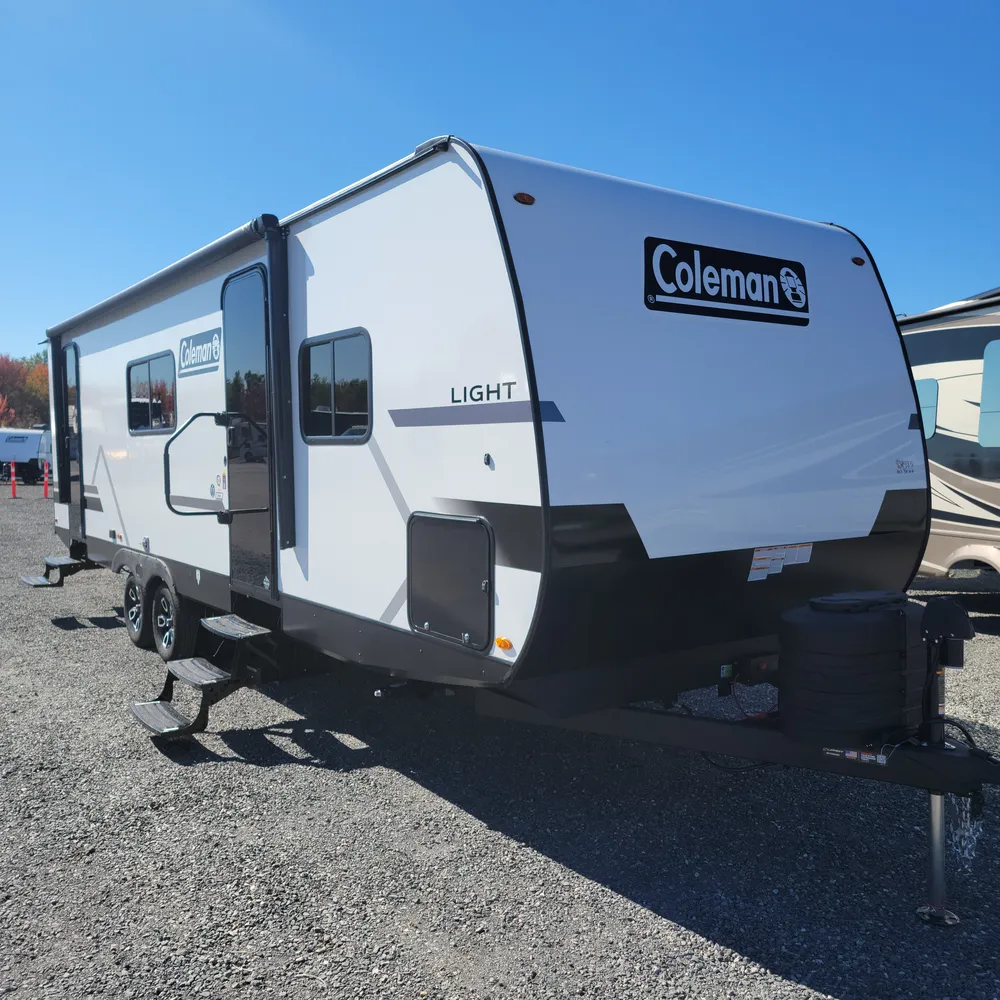 With room to sleep eight people, the lightweight 2026 Coleman Light 26BX travel trailer is ready for your next adventure without the hassle of a heavy rig. The spacious floorplan features double-size bunks, and a large slide-out that expands your living area. Enjoy extra-tall interior ceilings, and a private front suite with a queen bed.  A second entry door provides direct access to the rear bathroom, making it easier to keep the interior clean.