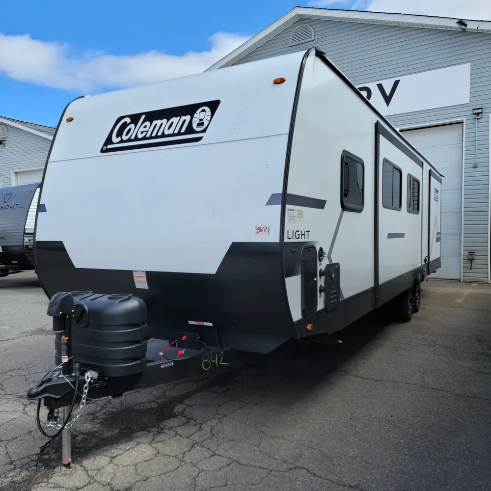 In stock at Stone’s RV, the 2026 Coleman Light 29BX is a family-focused bunkhouse travel trailer that delivers smart space planning and outdoor convenience. At 34 feet long, this unit sleeps 8 people, weighs 5,925 lbs dry with a GVWR of 8,000 lbs and a hitch weight of 790 lbs, making it towable by most half-ton trucks while providing ample room for families exploring the Maritimes.