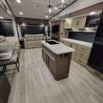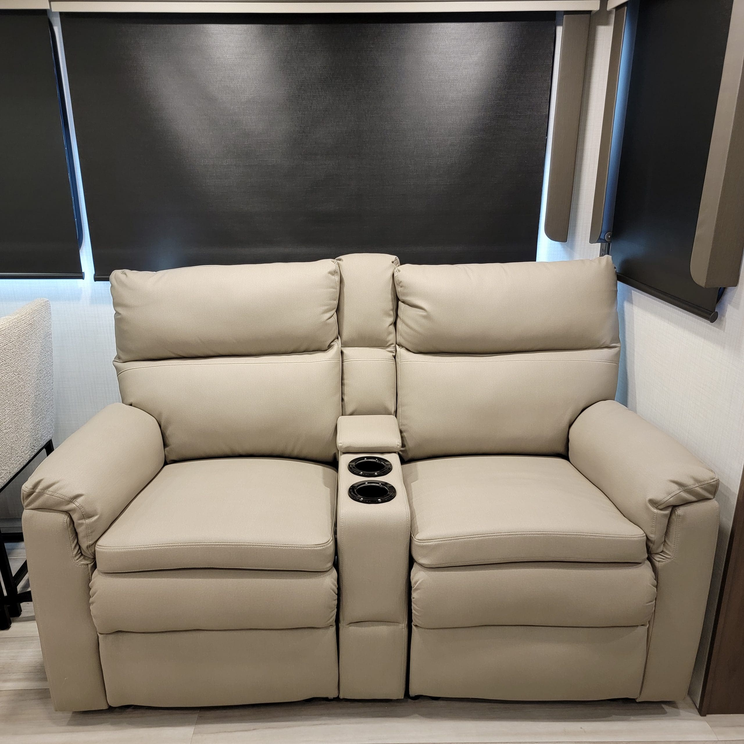 The 2026 Cougar Half-Ton 28RLI is a feature-packed rear-living fifth wheel built for comfort and versatility, ideal for both weekend getaways and longer adventures thanks to its lightweight, towable-by-half-ton-truck design and climate-controlled, solar-ready features. Key elements include a spacious opposing slides in the living area, comfortable theater seating, a chef-friendly kitchen with an island and pantry, and a dedicated bedroom with a king-size bed and abundant storage. The exterior boasts an automatic leveling system, dual-pane windows, and a large pass-through storage compartment, ensuring convenience and durability for years of exploration.