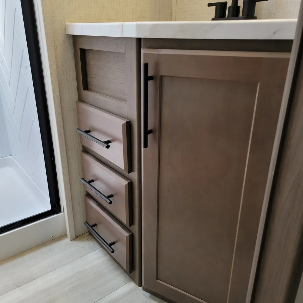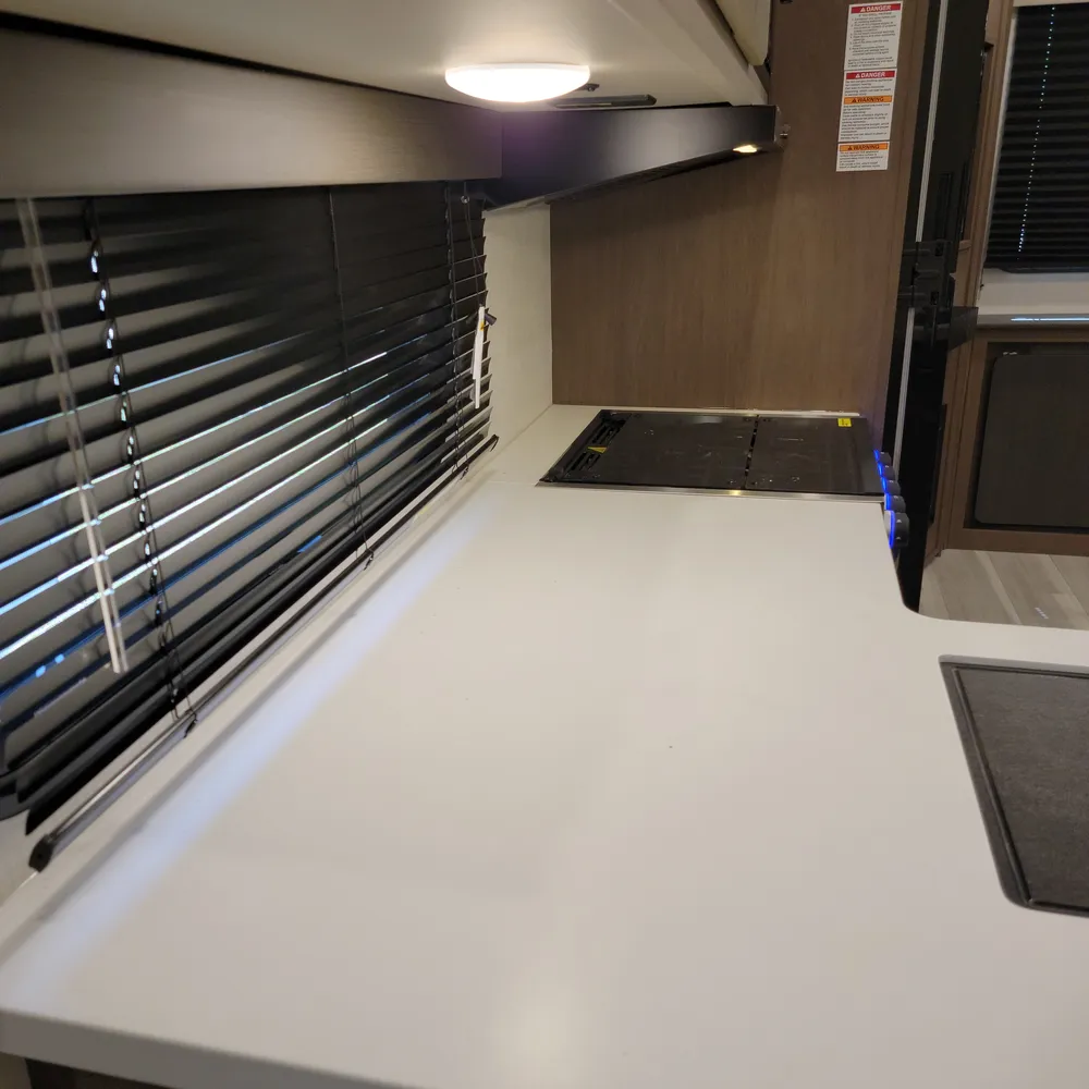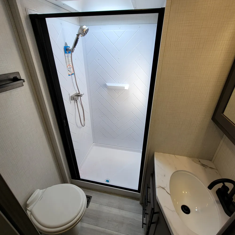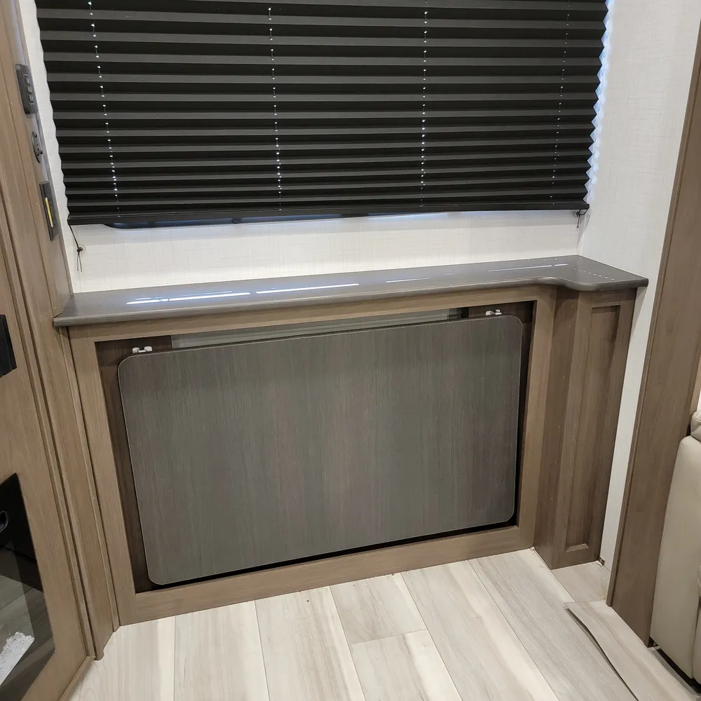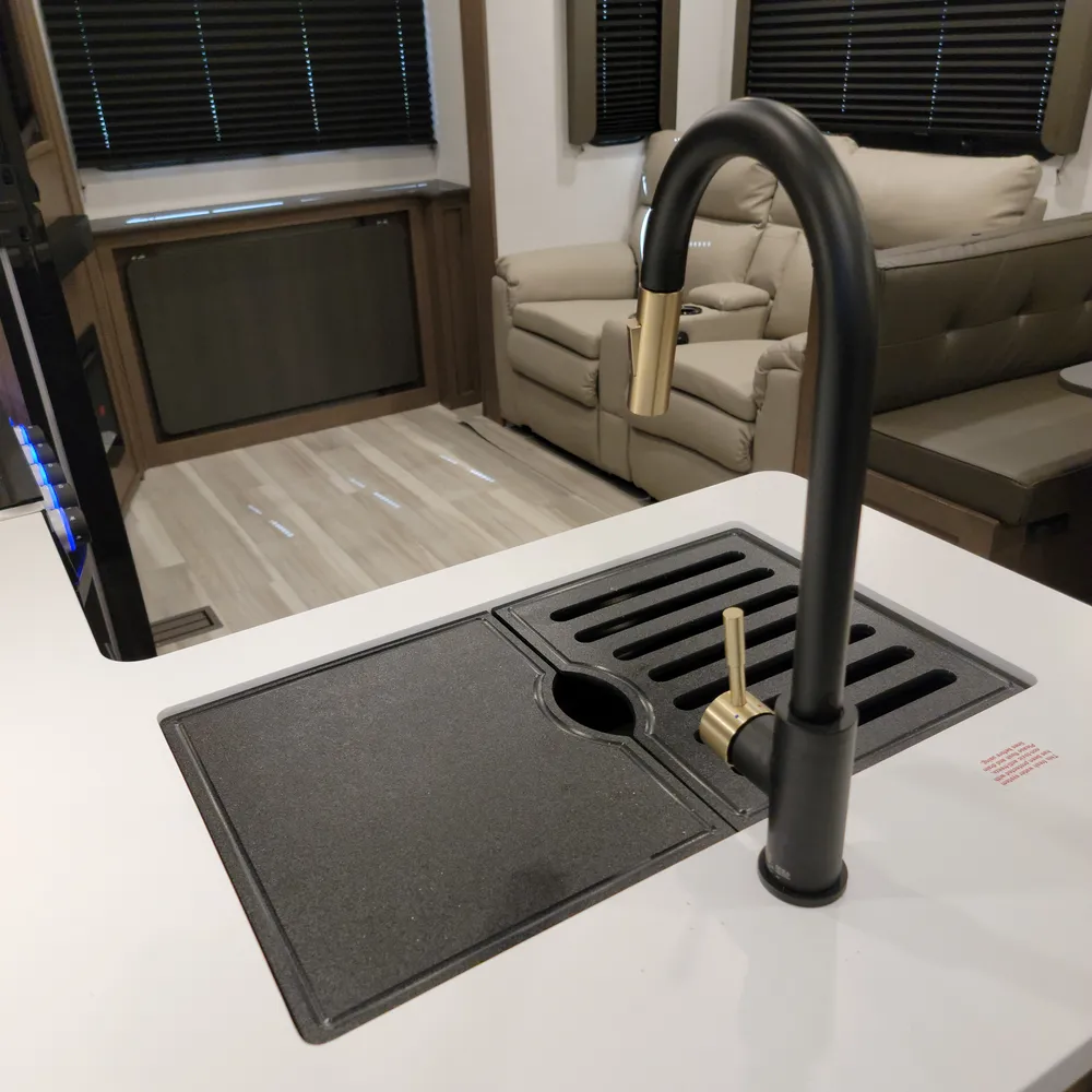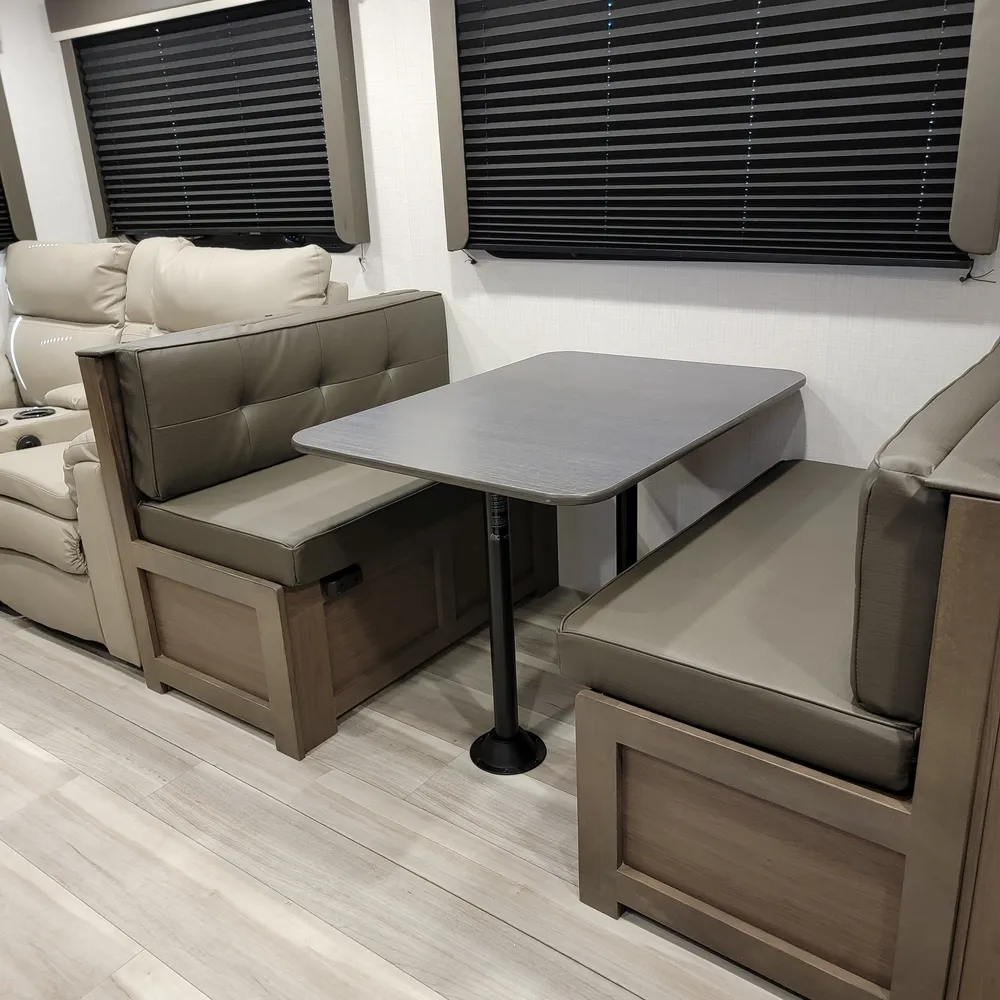 The 2026 Cougar Sport 2400RE is a fifth-wheel RV designed with a focus on lightweight towing and a spacious interior. It features a combined kitchen and living space with a large slide-out, a rear kitchen with a butler pantry, and a private front bedroom. The 2400RE is part of the Cougar Sport line, known for being smaller and lighter than the standard Cougar models, making it easier to tow.