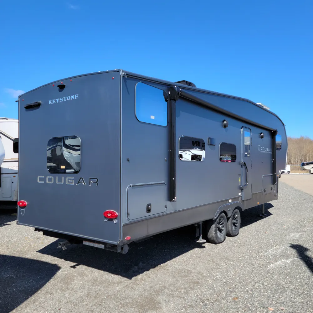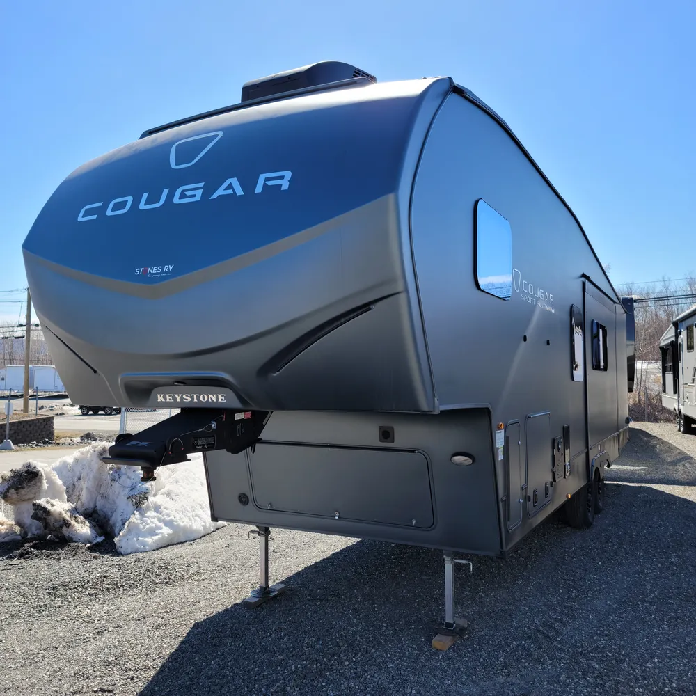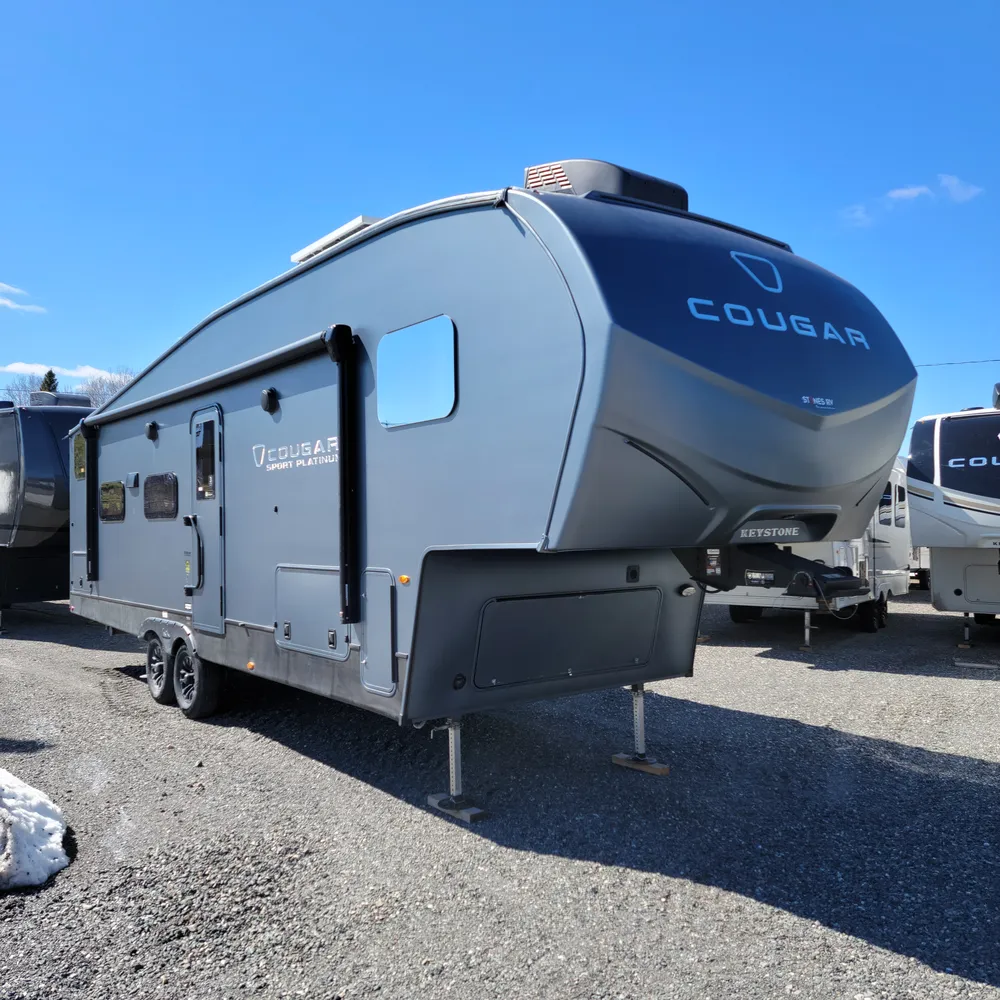 Stone’s RV, your Nova Scotia Keystone Cougar dealer serving Atlantic Canada from New Glasgow and Sydney has the 2026 Keystone Cougar Sport 2700BH PLATINUM in stock. This 32-foot bunkhouse fifth wheel sleeps 10 and delivers half-ton towability with premium Cougar quality. With a dry weight of 7,652 lbs, GVWR of 9,500 lbs, and pin weight of 1,460 lbs, the Cougar Sport 2700BH PLATINUM brings lightweight towing and family-focused layouts together. The PLATINUM edition features eye-catching matte platinum exterior paint, theatre seats, and upgraded appointments that set it apart at Maritime campgrounds.
