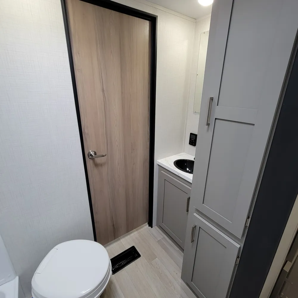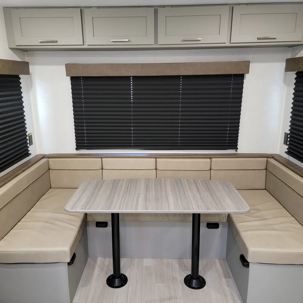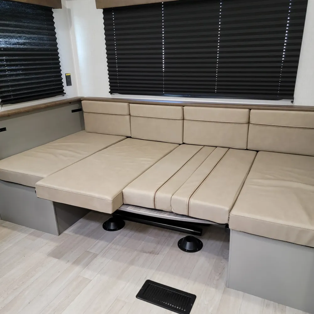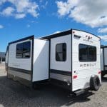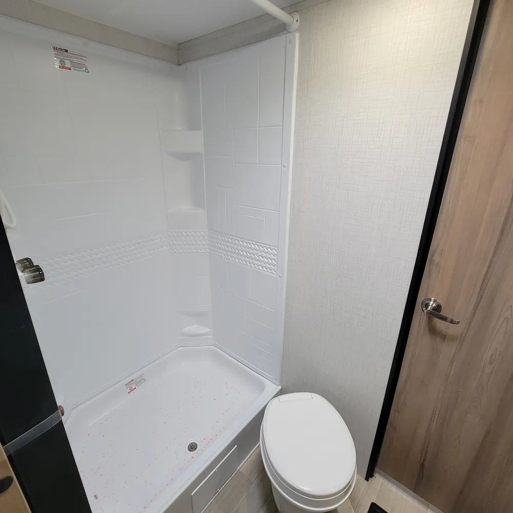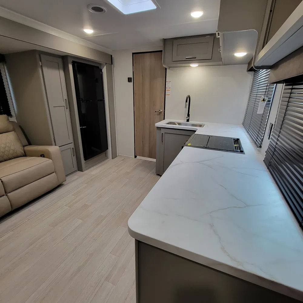 Vacations to your favorite places just got easier in this dual entry travel trailer. You can enter in through the rear living area or the front master bedroom after a tiring day. The camp cook can make meals on the three burner gas cooktop, while the others gather around the rear U-shaped dinette. There is also a sofa slide out for additional seating spaces, and both of these pieces of furniture will double as your guests’ sleeping space at night.