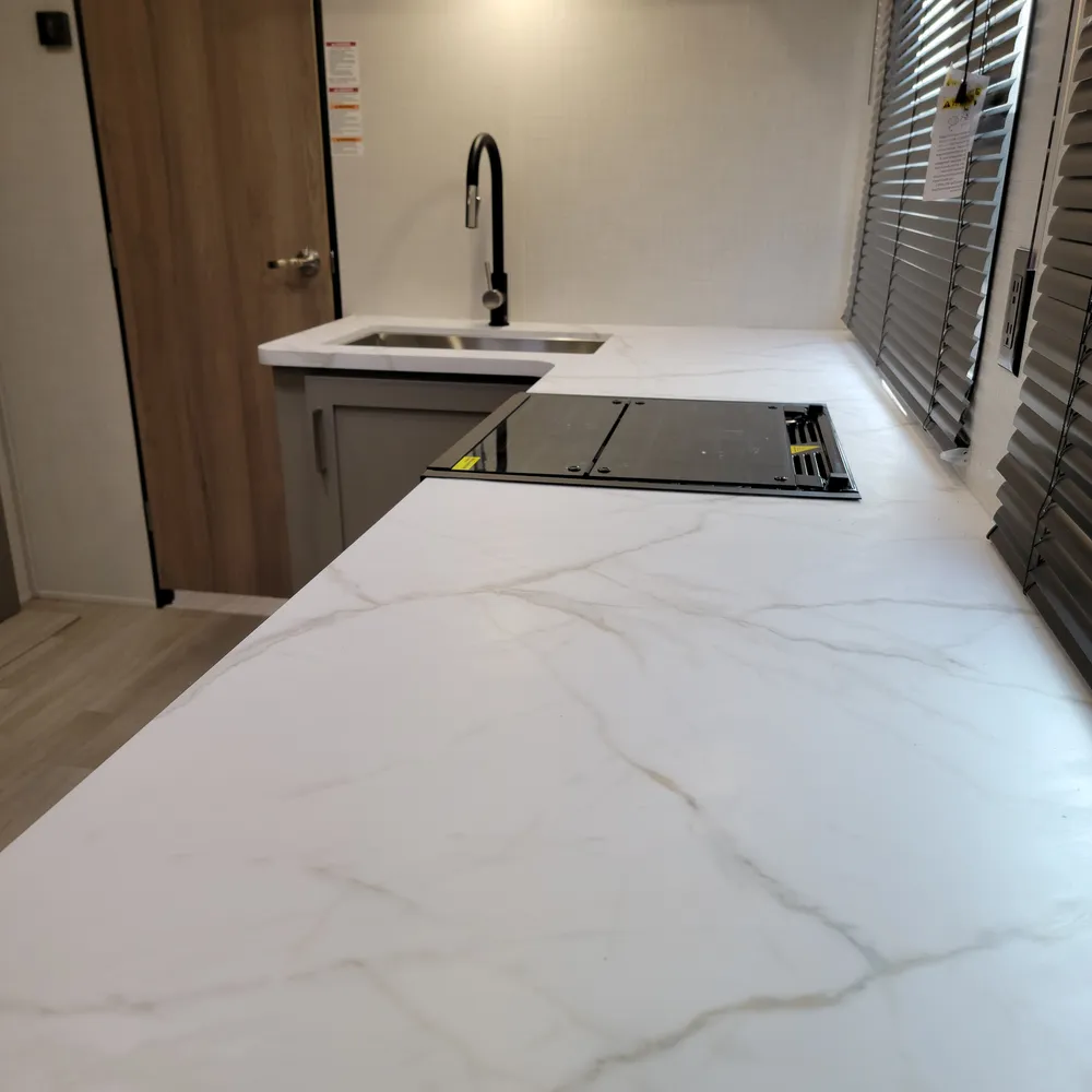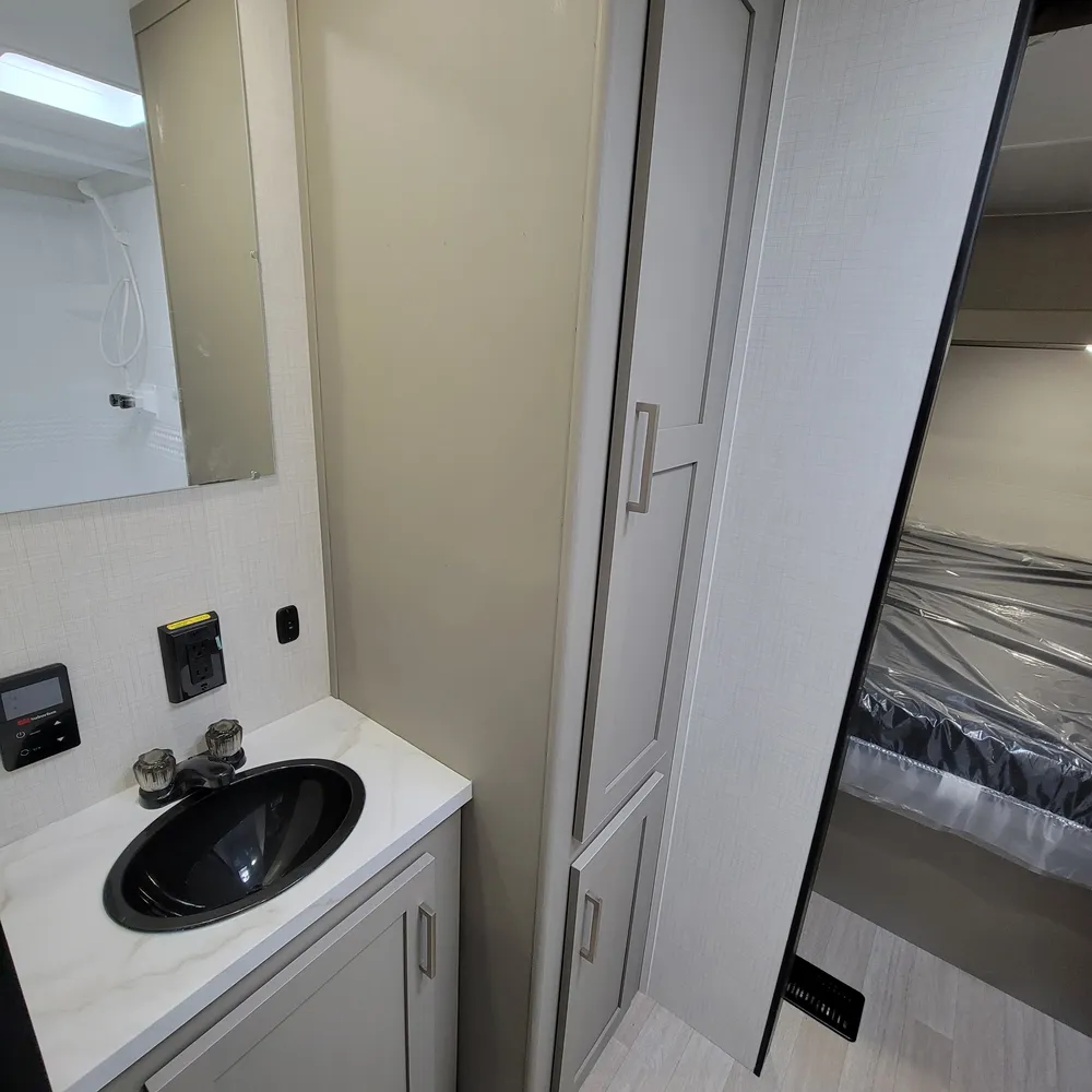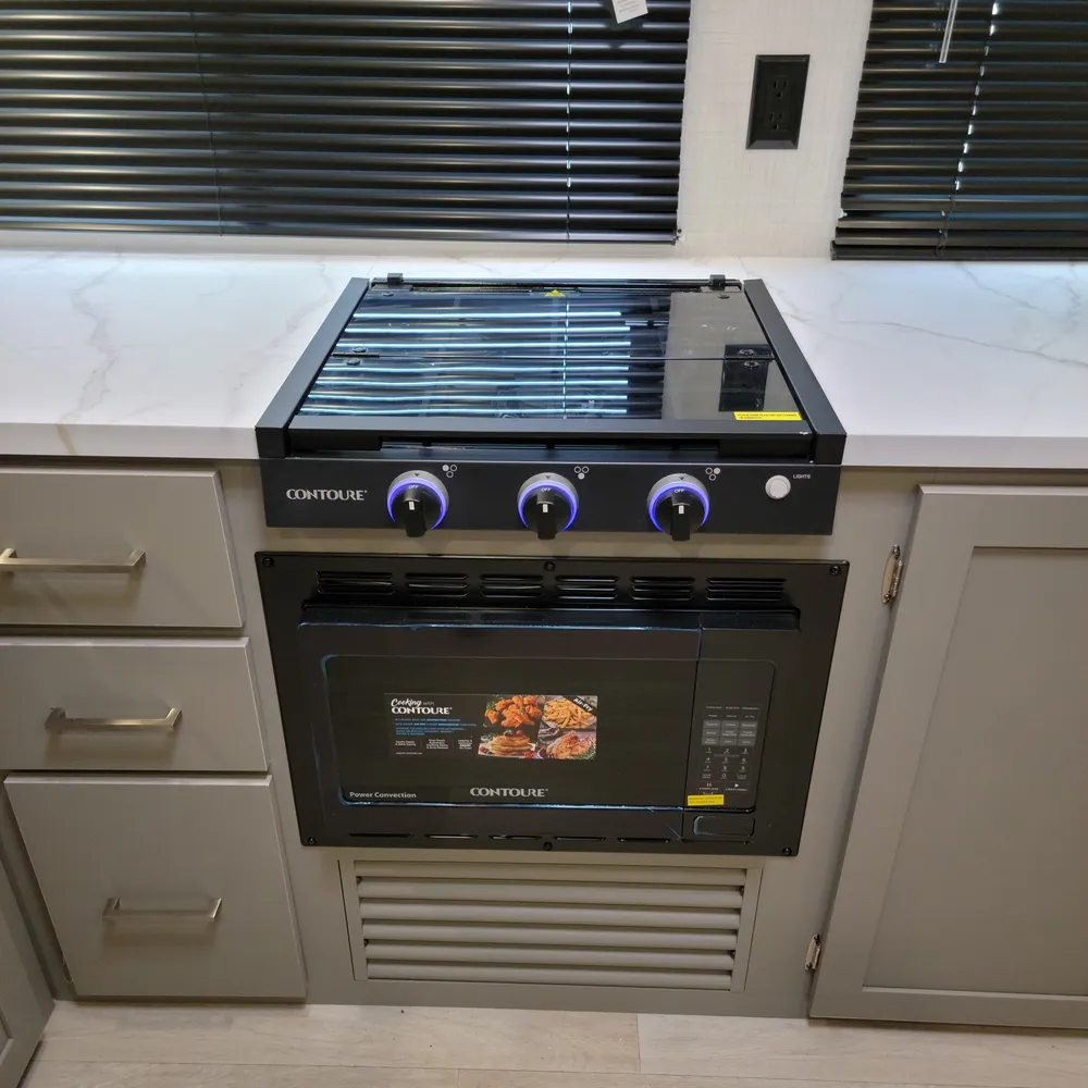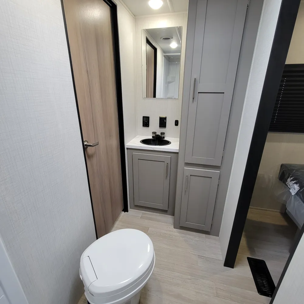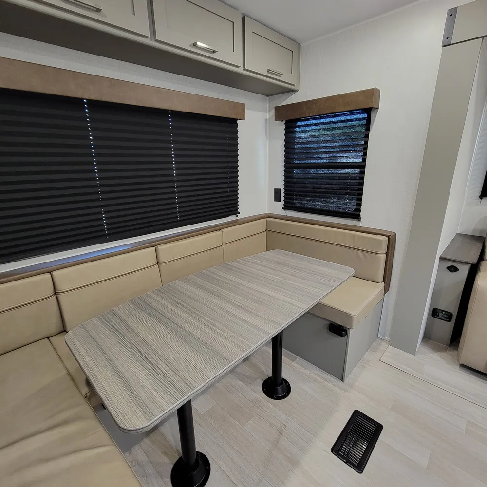 Vacations to your favorite places just got easier in this dual entry travel trailer. You can enter in through the rear living area or the front master bedroom after a tiring day. The camp cook can make meals on the three burner gas cooktop, while the others gather around the rear U-shaped dinette. There is also a sofa slide out for additional seating spaces, and both of these pieces of furniture will double as your guests’ sleeping space at night.