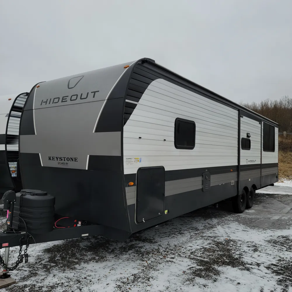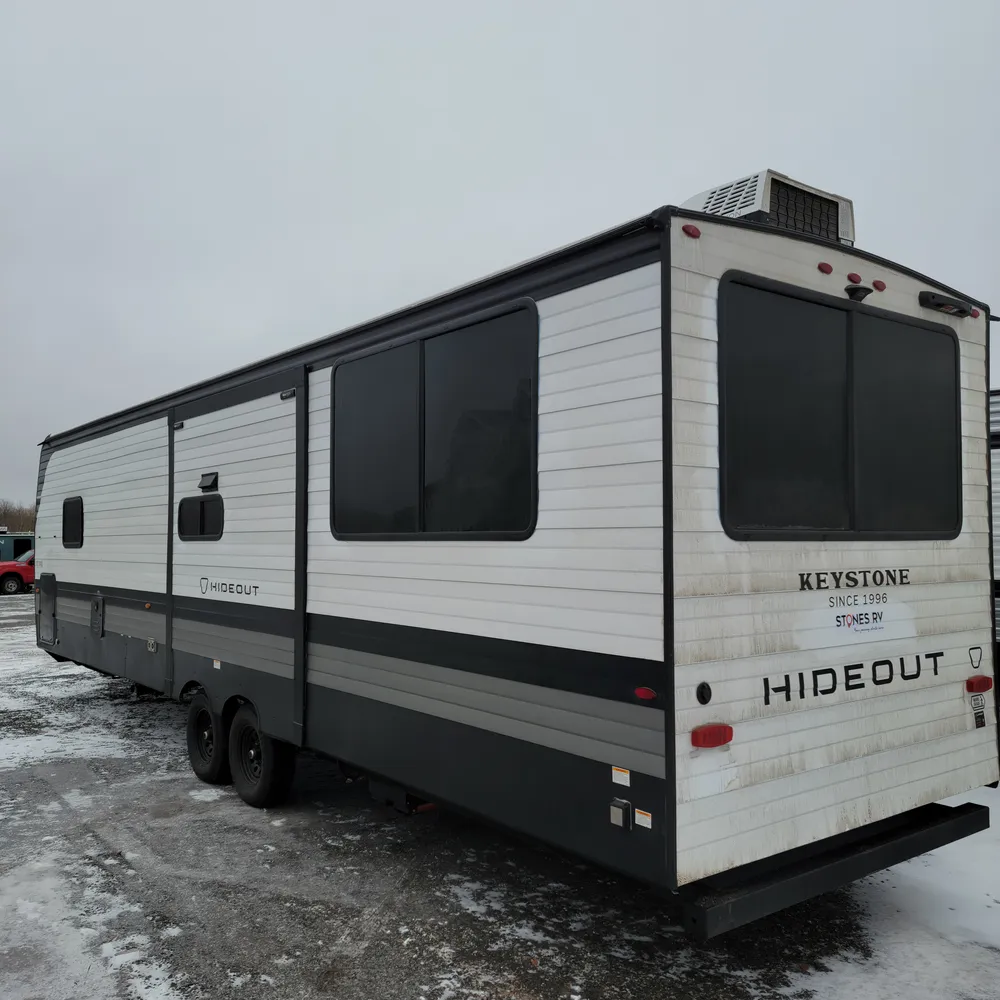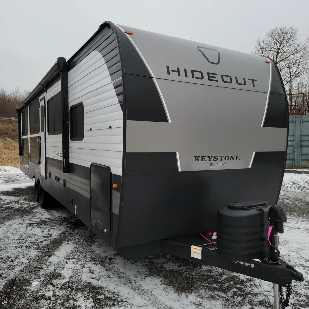 Check out the 2026 Hideout 31SUNROOM. This Hideout MAX is a 35-foot travel trailer featuring a unique sunken sunroom with panoramic windows and we have it at Stone’s RV. This innovative Hideout model stands out with its signature rear sunroom surrounded by windows on three sides, creating a bright and inviting space unlike any other travel trailer in our inventory.